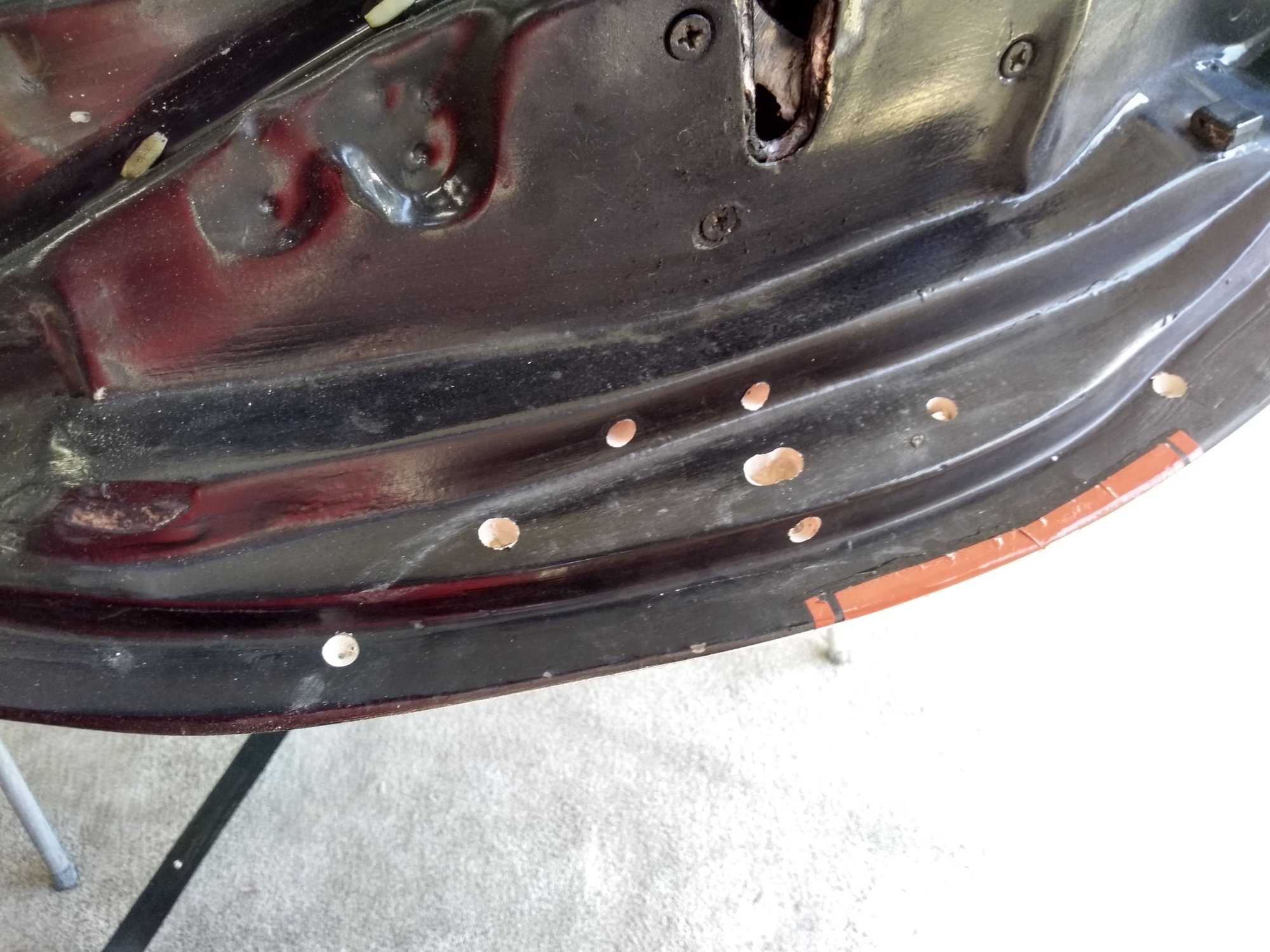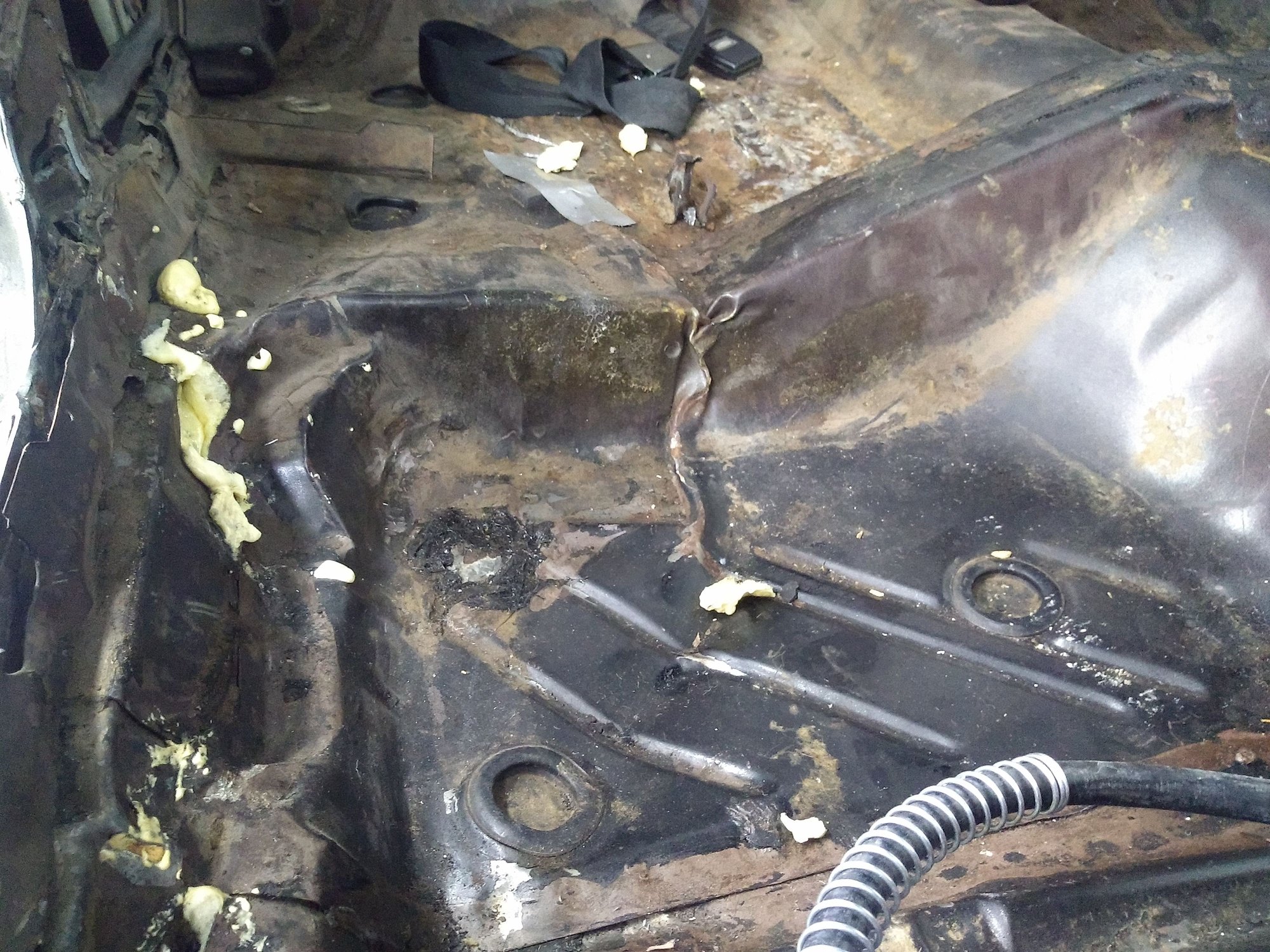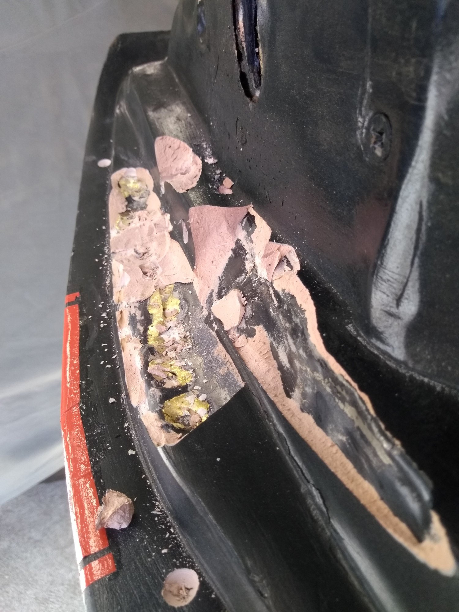 While Im waiting on the sheet-metal to arrive I decided to just slowly take the car apart. I knew the door was junk, but god damn this mudwork is kind of impressive!