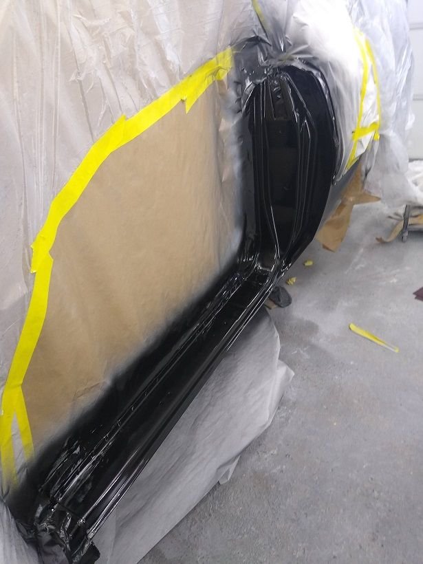 Couple of areas I still have to fine tune now that the black is on, but for now I can pull the car apart, finish the passenger jamb area and start painting parts like the hood and fenders.
