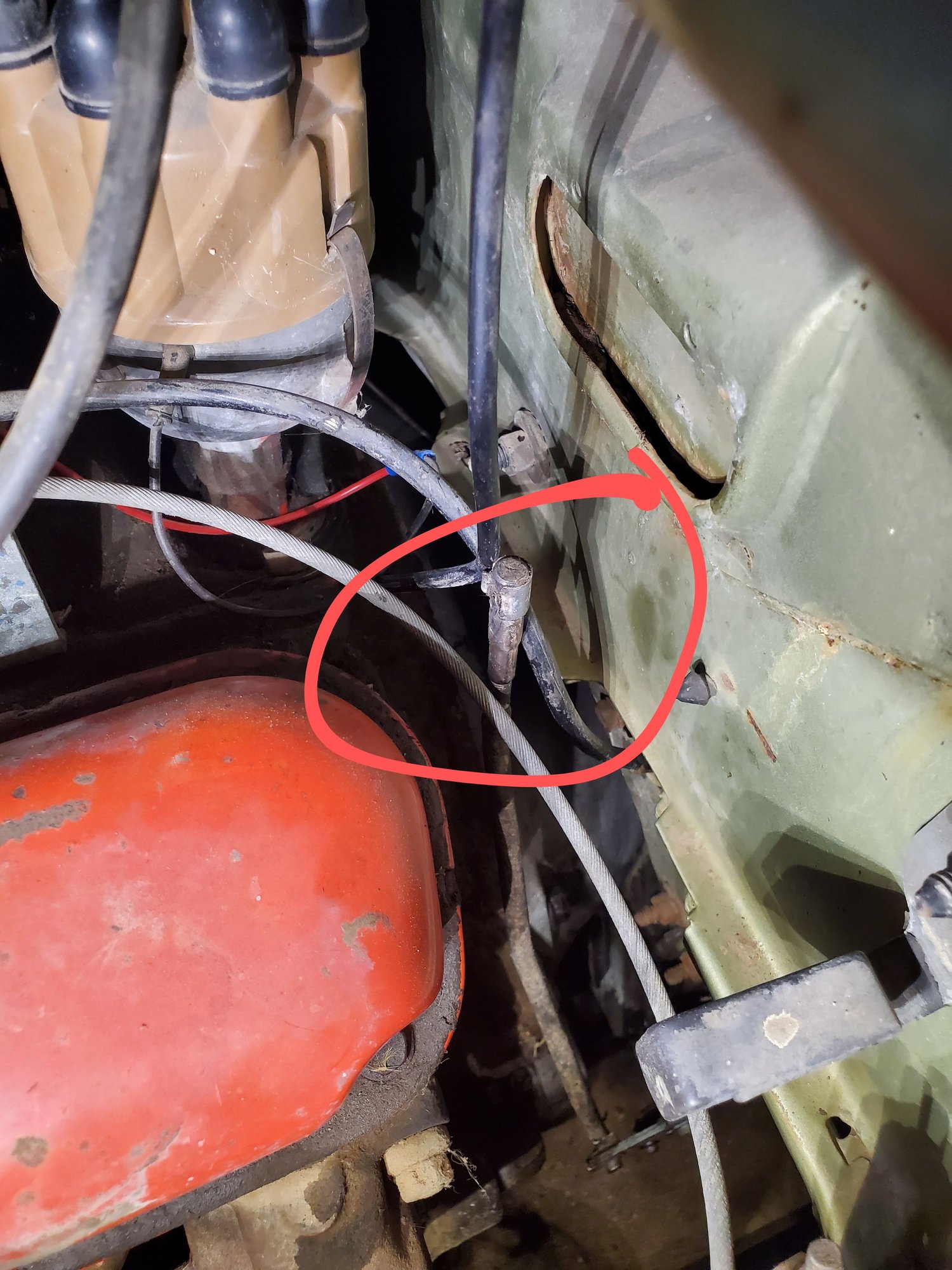 AS for the rod adjustment, That is up at the carb. in you photo, the black cable is covering the adjustment. It is threaded at the end of that rod.....