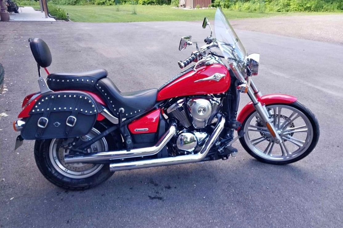 This all started about two months ago when I bought my grandson a scooter, he’s going to turn 14 this winter and will be able to get a endorsement on his learners permit to ride it. Well I made the mistake of getting on it and going for a ride, twenty minutes later I wanted a motorcycle again , up until I got married to my second wife I always had something to ride. I sold my last bike twenty eight years ago so I dropped a few bucks and bought this, the bike is like new with only ninty two hundred miles on it…