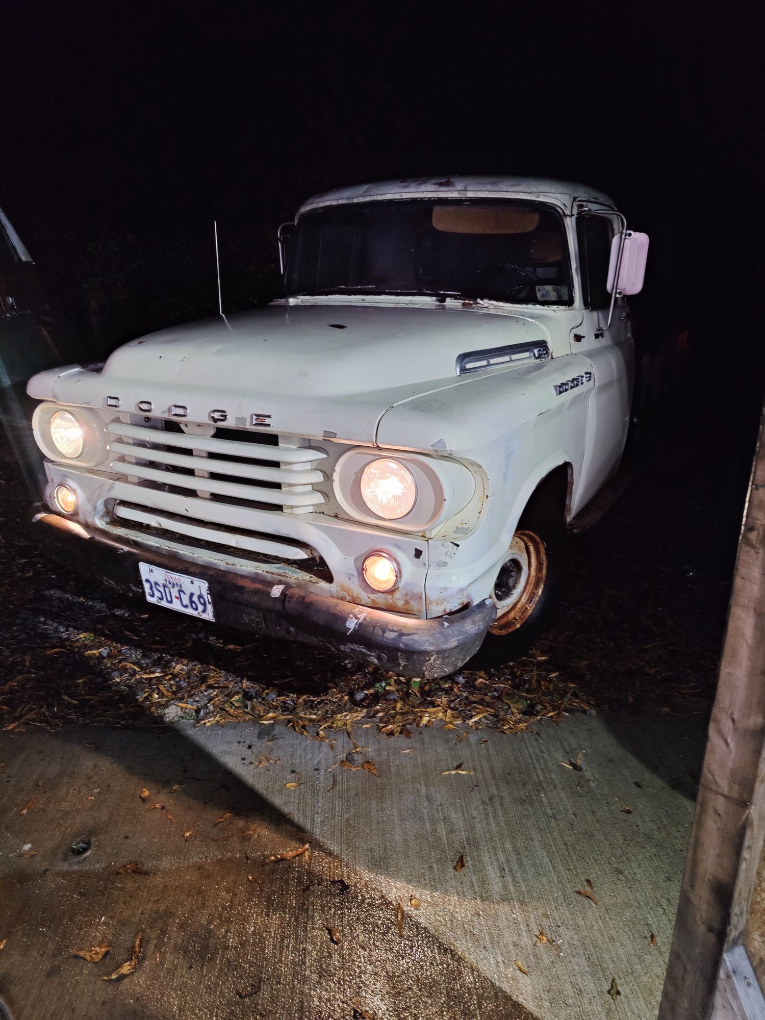 Hello all, glad to be a part of this forum. I hope to learn a good deal. Currently I am working on a partial restoration of a frankensteined 1958 Dodge D100. This thing is simply going to be used as an advertisement vehicle in front of our business. Right now it is mostly stripped of the Latex house paint the previous owners had put on...bless their hearts. It has a 318 near as I can tell, and possibly a A904 behind it. Slowly getting parts and pieces together for it though it does run and drive around the yard. Mopar is not a strong suit of mine so this is a learning experience from start to finish and I am having quite a bit of fun with it. I will probably have a ton of questions or suggestions needed for parts and how-to's and this seems like a decent place to find those answers. Thanks ahead of time for the help.