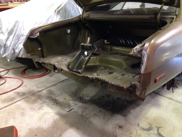 The right side trunk floor and taillight panel are almost completely welded now. I'm working on the quarter patch.