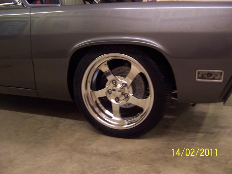 Nice ride!!!! If you don't mind me askin', what tire/rim size package do you have going on that baby? Is it stock fender and suspension fit? I'm looking to do something similar with my '66 Belvedere.