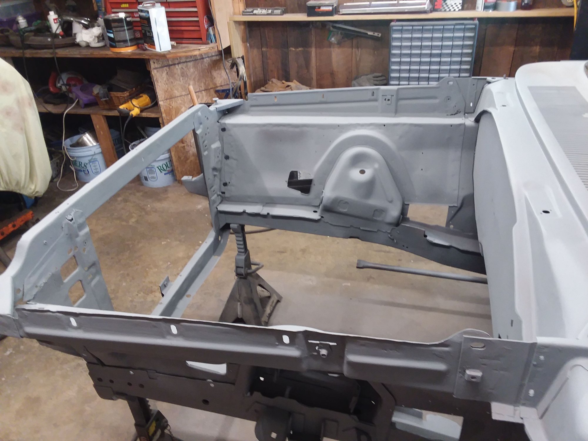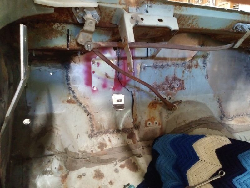 Remove the wiper motor from it's resting place. Set this aside with the mounting bolt/nuts and wiring. Get out your wheel of death and cut out the offending divot. In my case I cut the entire firewall, but that's just me. I'm a little crazy. Cut a hunk of 20GA sheet metal and trim to fit in the opening you made. Clean both the new piece and the area surrounding the hole you made. Sand the edges of both to rough up the metal. Clean again to degrease them. Weld in place, slowly, spreading out the welds so you don't add too much heat. Sew it all up and grind down to smooth. Now. cut out the overhang upper edge and cut another 20GA piece to fit into that cut out. and repeat.
