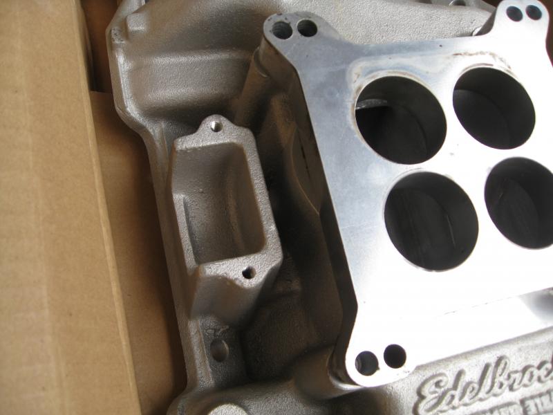edelbrock performer intake manifold. I have the brake booster vacuum going directly to the intake manifold, pcv valve going to the back of the carb and nothing going to the front of the carb other than the metering block that currently has a vacuum guage on it. the other 2 ports are blocked off.