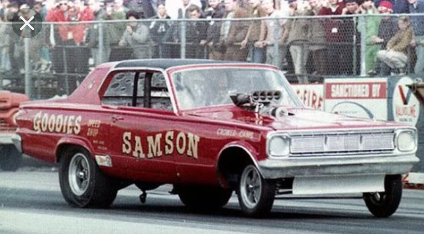 This is a 63 dodge dart that has a 66 front and the gt vinal roof. Samson had a 426 supercharged nitro