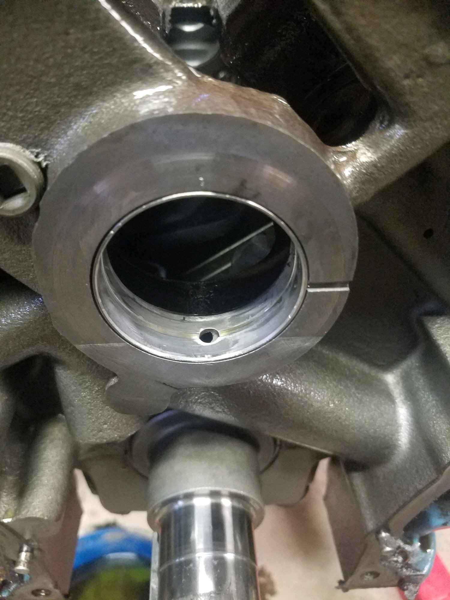 I pulled the pistons today. The bearings didn't look good but 5 & 6 were bad. Not enough to mess up the crank, that is not blue, good. I didn't pull the crank, I think I'm going to take it to the shop and let them set it up. I recently moved and all my stuff is still in boxes. Gotta put the car on the road. I pulled the pump apart, clean enough to eat off of. I put a light through the oil port going to the cam bearing. I can see light in the cam bearing feed but not through the piston hole for the fuel pump. I think you are correct that it is its own entity and not fed by the pump. The more I think about it maybe I did run the sump dry. Sucks, but hindsight is 20/20. I can't think of any other explanation.