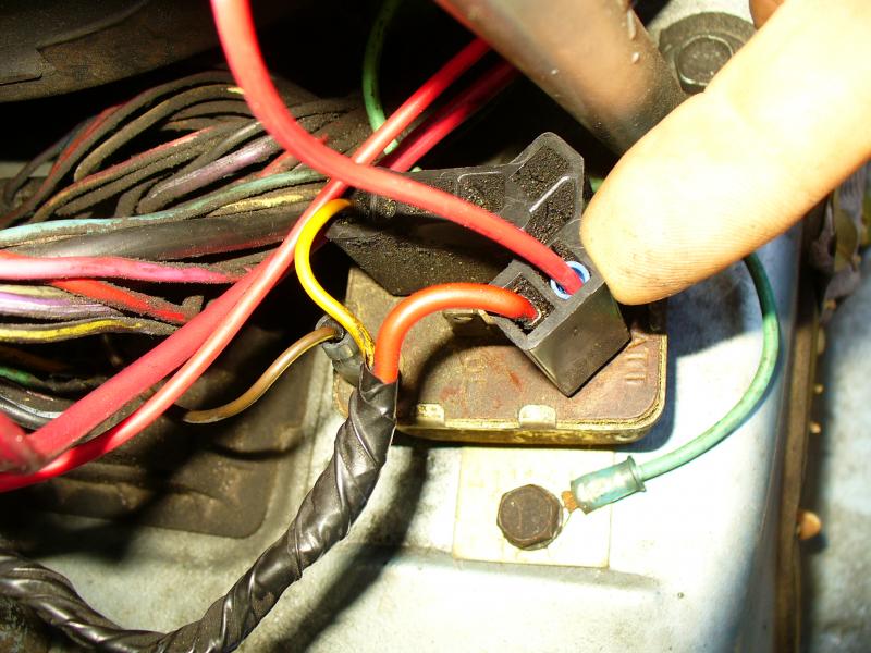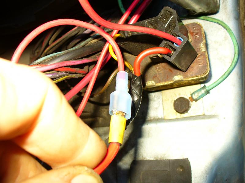 the wire with the yellow crimp on it goes down too the solenoid on the starter.