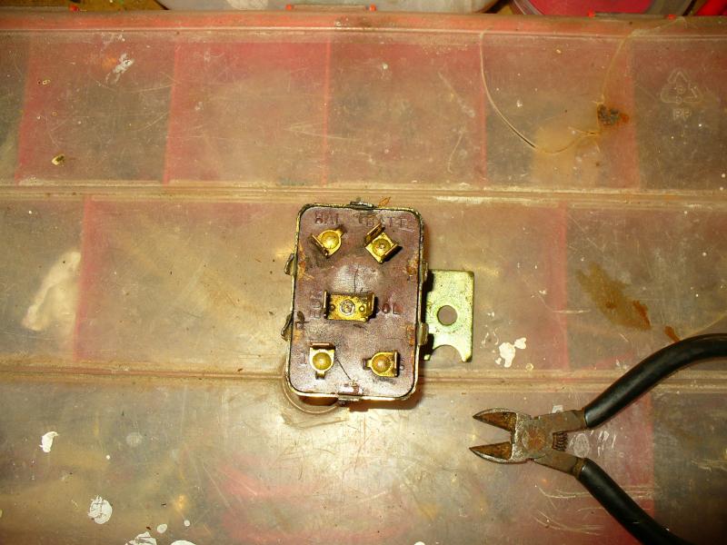 Next the current goes through the coil of the relay and comes back out the remaining push--on terminal. There it goes down to the NEUTRAL SAFETY switch on the transmission. This is a 3 terminal switch. We are concerned only with the CENTER terminal. This terminal is GROUNDED in PARK or NEUTRAL