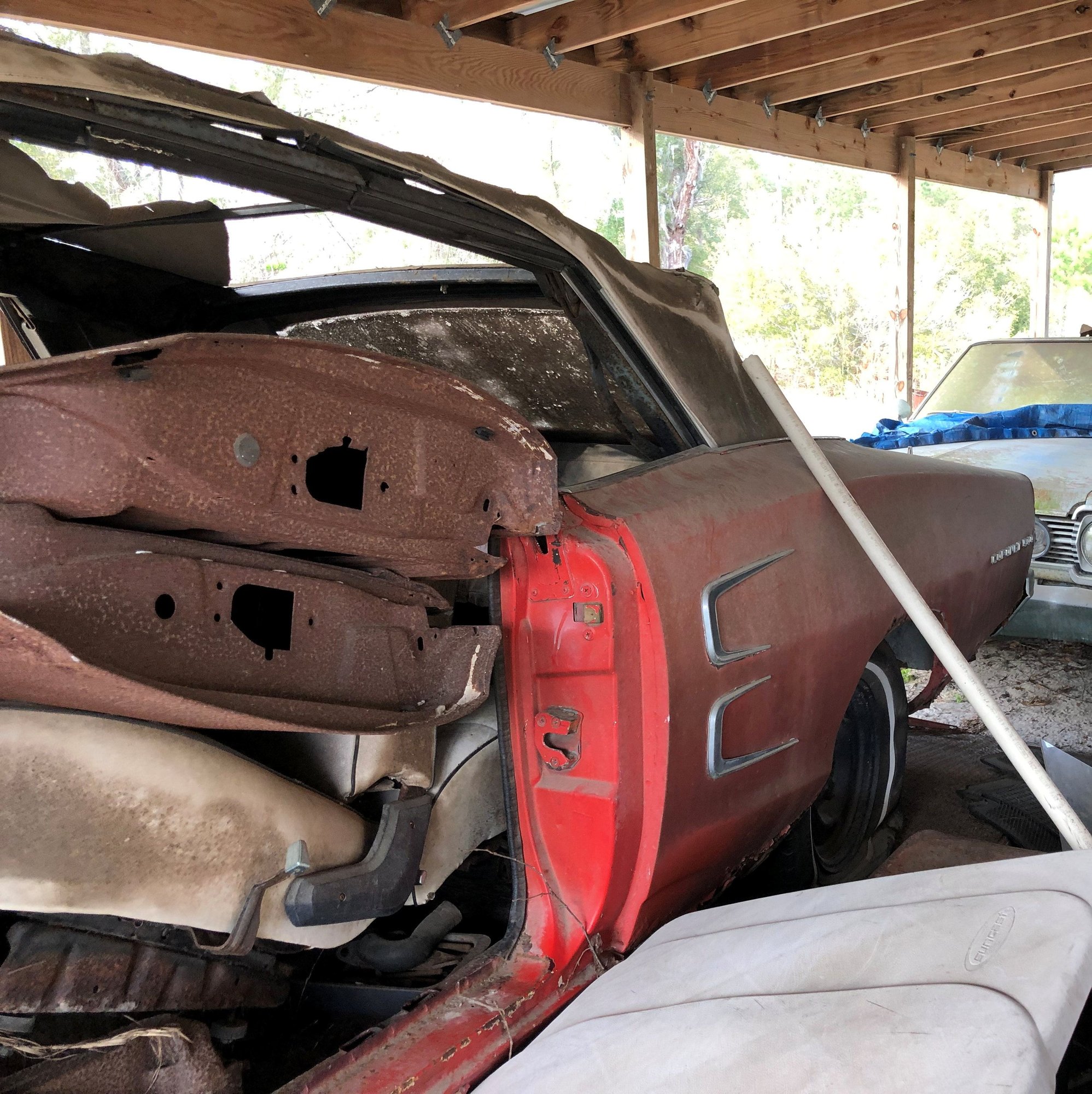 The first 3 are at my one house in new Bern, NC, the last 2 are at his house in Newport, NC. I have more parts for the 68 500 convertible at my other house in new Bern. I also have a rotisserie there. I forgot to post pics of the GTX. I’ll do that tonight when I get home.