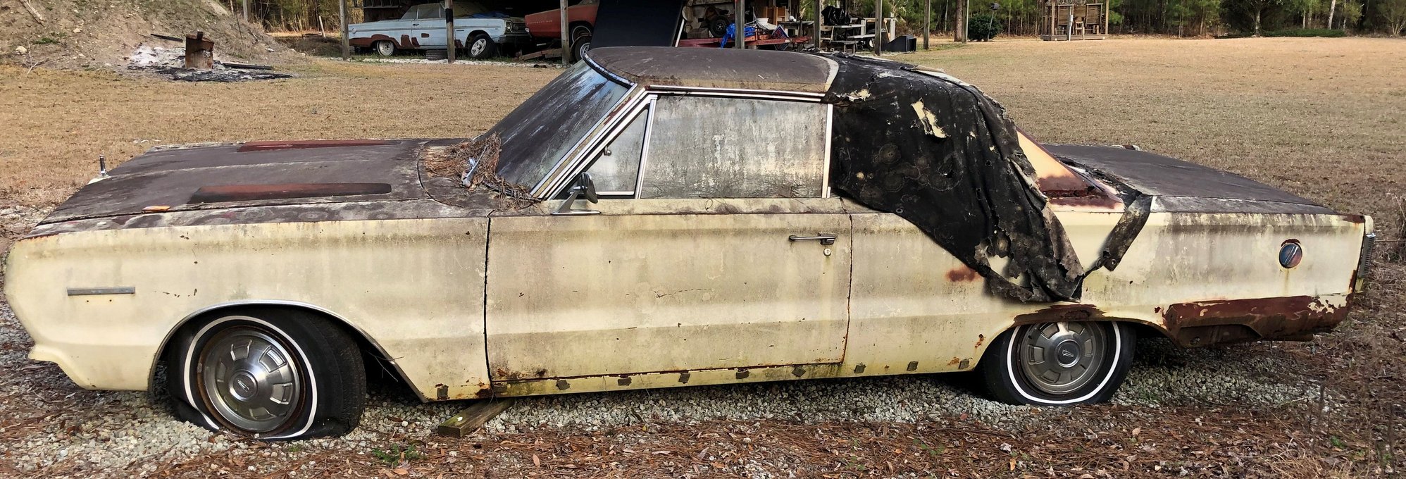 My stepfather had passed away and left us his project cars and LOTS of parts. I do not have the time to restore these cars and do not have need all the parts. We have titles for all the cars and there are NO reproduction parts except for quarter skins for the cornet. 65 GTX, 65 Convertible, 68 Cornet 500 Convertible, 68 Cornet 4dr. Engines, K members, doors, hoods, trunks, dash pads, carbs, intakes, rear ends, transmissions, driveshaft’s, leaf springs, torque converters, glass, almost anything and everything for these cars. The 6% GTX has an engine and trans and was running a few years ago. The engine he built for it was a little strong (too much cam), but it would MOVE. He was a MOPAR mechanic and was known in the area for over 30 years as the MOPAR MAN. Willing to sell all as a lot or the cars individual. All vins are original to the cars and none were tampered with. I don’t have pictures of all the parts or the rest of the cars yet. The 68 Convertible has a bad left side front frame rail and has started to be cut out. I have the replacement one stored in a garage at my other House.