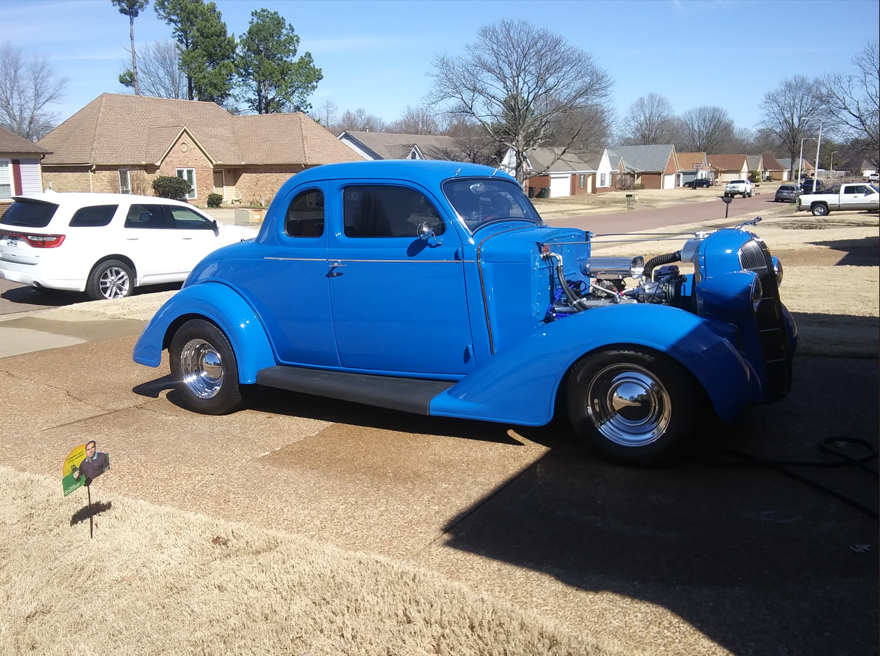 Had our official first Bartlett Cruise-In of the year here yesterday and couldn't have had better weather- upper 70's and clear sunny skies. Got the '36 out, I'm waiting on some consistent weather to begin repainting the firewall. Spent this past week buffing and waxing it and I reset the timing after pulling the distributor to replace the vac advance, she's running better than before now, that 360 pulls like a mule team! Down side, we lost about half of our spot due to a new Chipotle about to start construction. The organizers of the cruise are scouting out new locations but we're gonna stay put as long as we can.
