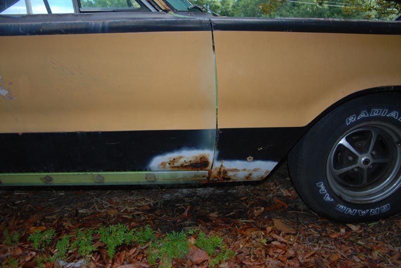This car is mechanically in good shape. It needs cosmetics, the doors have some rust (there is an extra set of doors for it) the passengers front fender has some rust in the cowl drain, the floors below the widnshield need to be replaced. The rest of the car is nearly rust free. The rest of the floors (including the trunk) are very nice. The paint is multi colored. The gold is original, the black I shot on the replaced quarters, the sublime was done by my brother. This car has been in our family 20+ years.