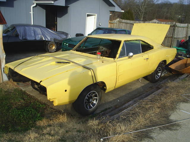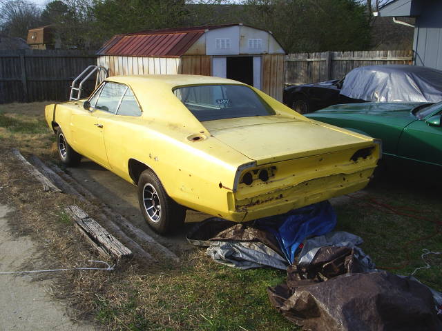 68 charger-NEW pans,NEW gas tank,new sending unit and straps,ALL NEW r/t suspention nothing missed,disc brakes,nice dash with orig am radio,interior panels good,nice back seat,have auto on floor setup and orig column setup,3:91 re 8 3/4,home made hidden subframe connectors,nice roof,good doors,good fenders,decent rockers,few small holes in rear quarters,rear pass frame rail replaced before,good front/rear valances,good trunk lid,good 68 tail light panel.comes with brand new repo 69 tail light panel(not installed) and tail lights,comes with correct 10 spoke direct bolt on general lee wheels with orig center caps no repos here.car is COMPLETE minus headliner,carpet,front window,eng/trans,front seats dont match orig rears.lighty disasembled but everything fits in car.was orig 318/904 car. email bandit327@aol.com 5k without wheels and 69 tp or 6k with everything.