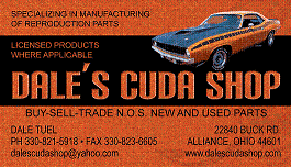 Offering quality concourse Mopar restoration parts for A, B, C & E Bodies. Time tested!!! We stand behind all of our products that we have to offer. We offer 100% satisfaction guarantee on our parts. We are offering the members of Cuda Challenger forum a 10% off on all orders placed before April 30th. on our website using coupon code: mopar1