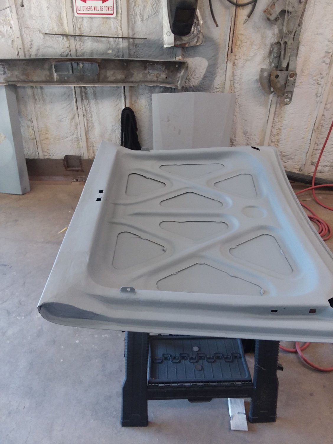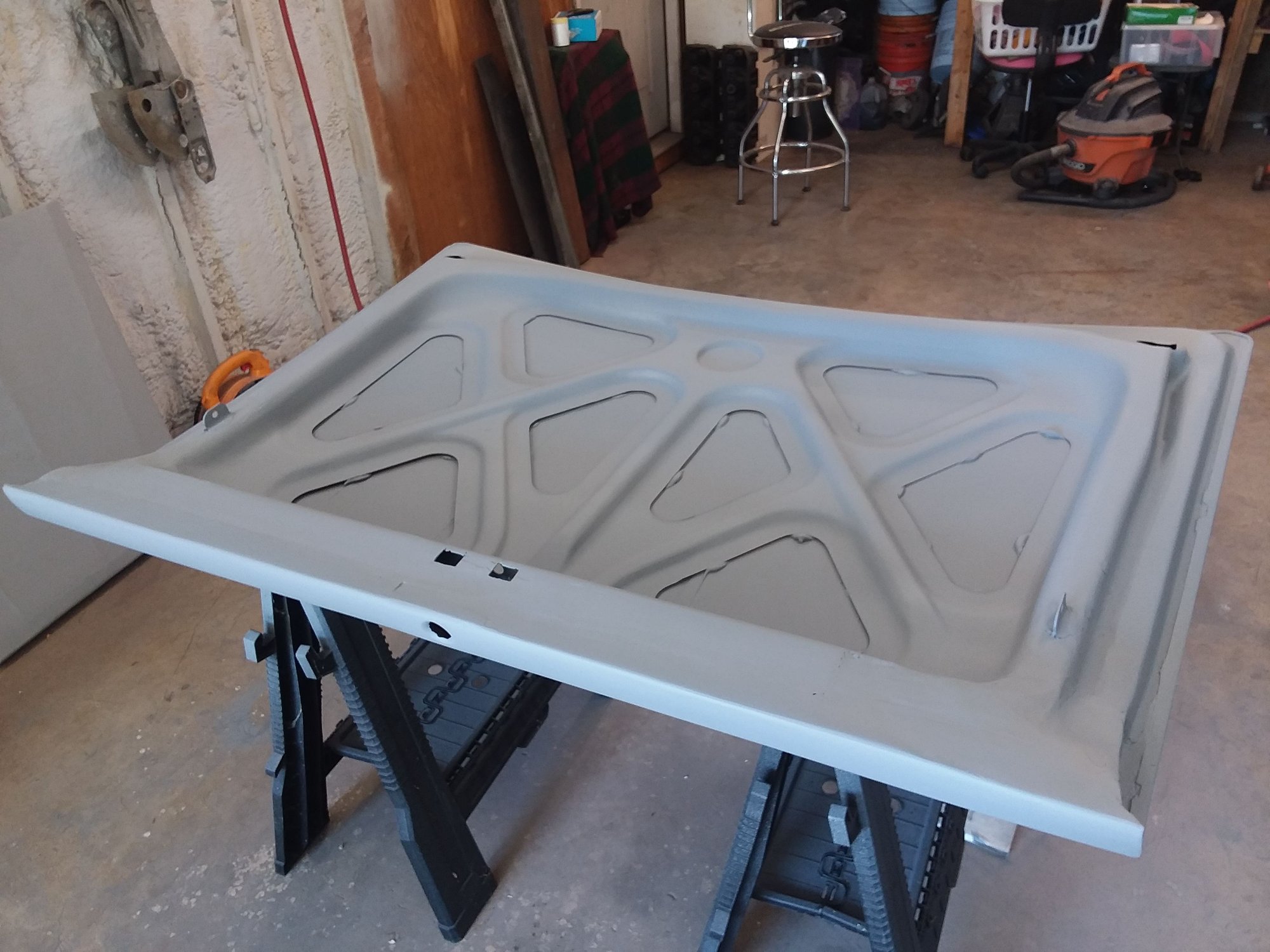 Attacked the trunk lid this morning and also painted the insides of the front fenders black. Ran out of grey primer...still have the hood and one fender to prime.