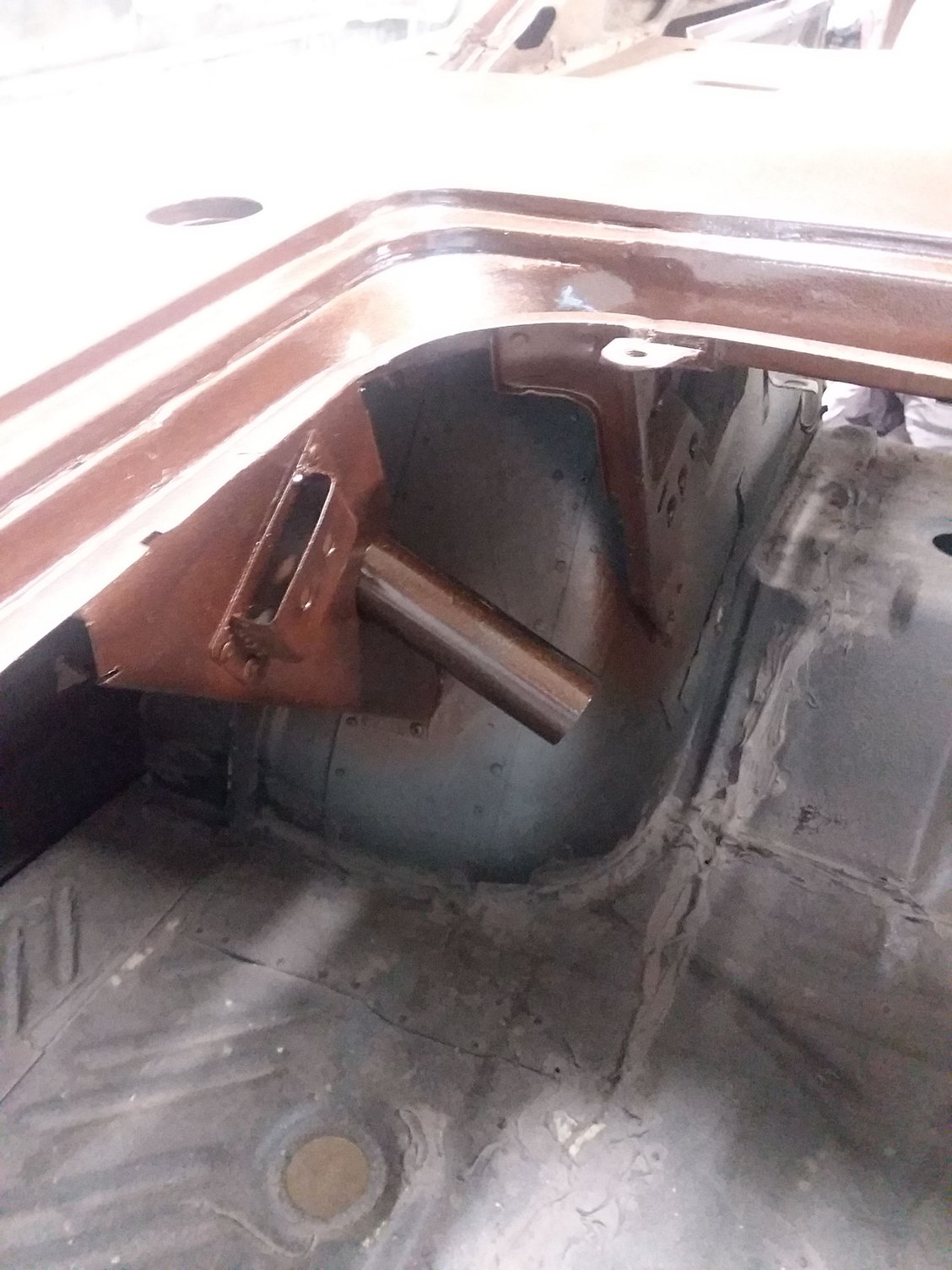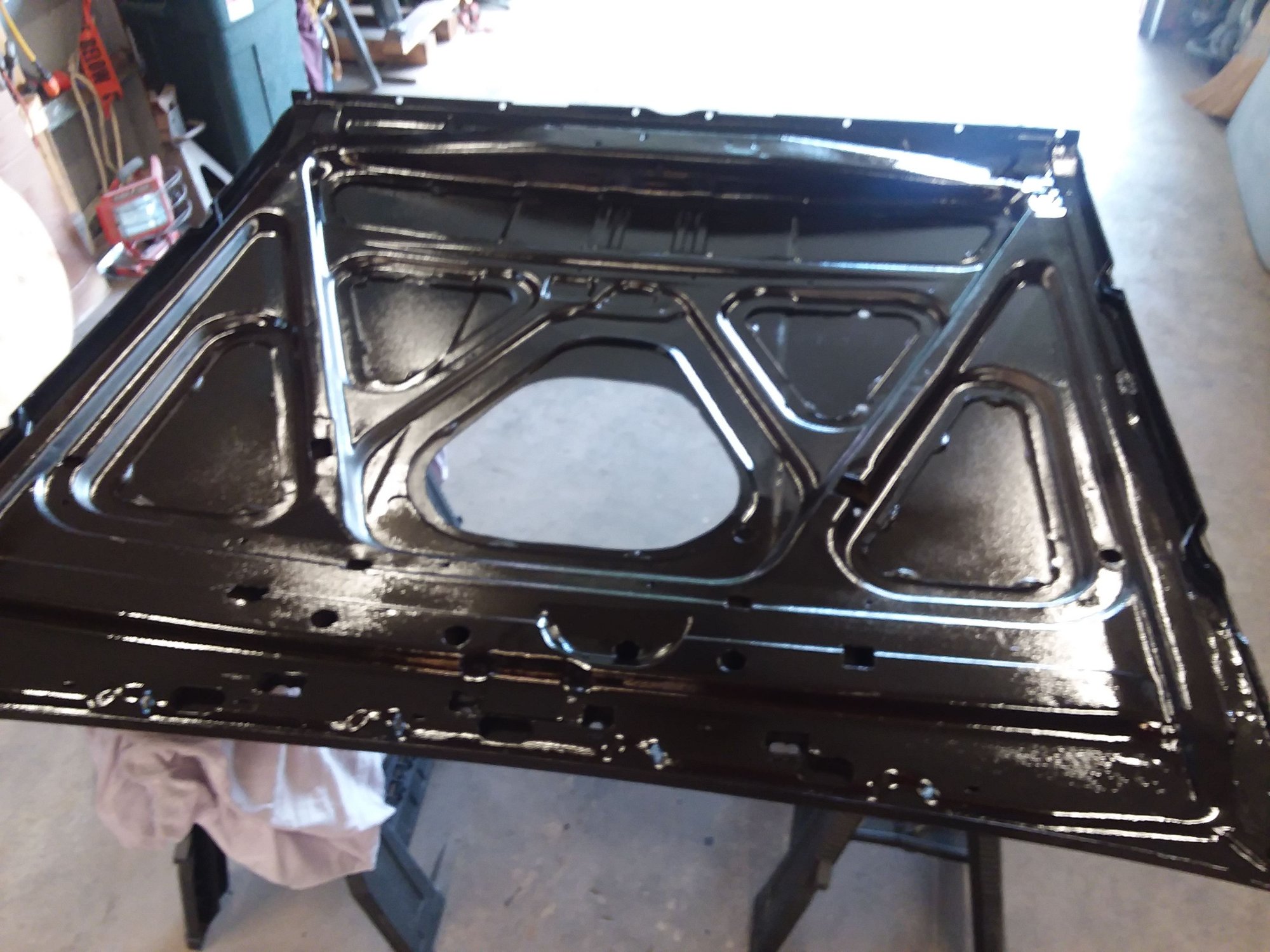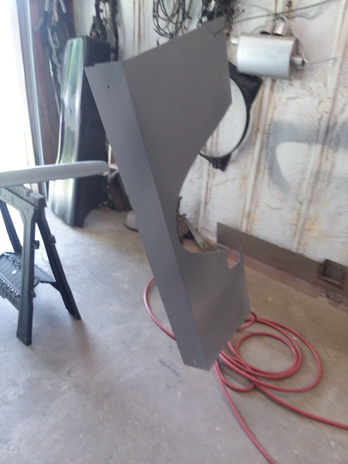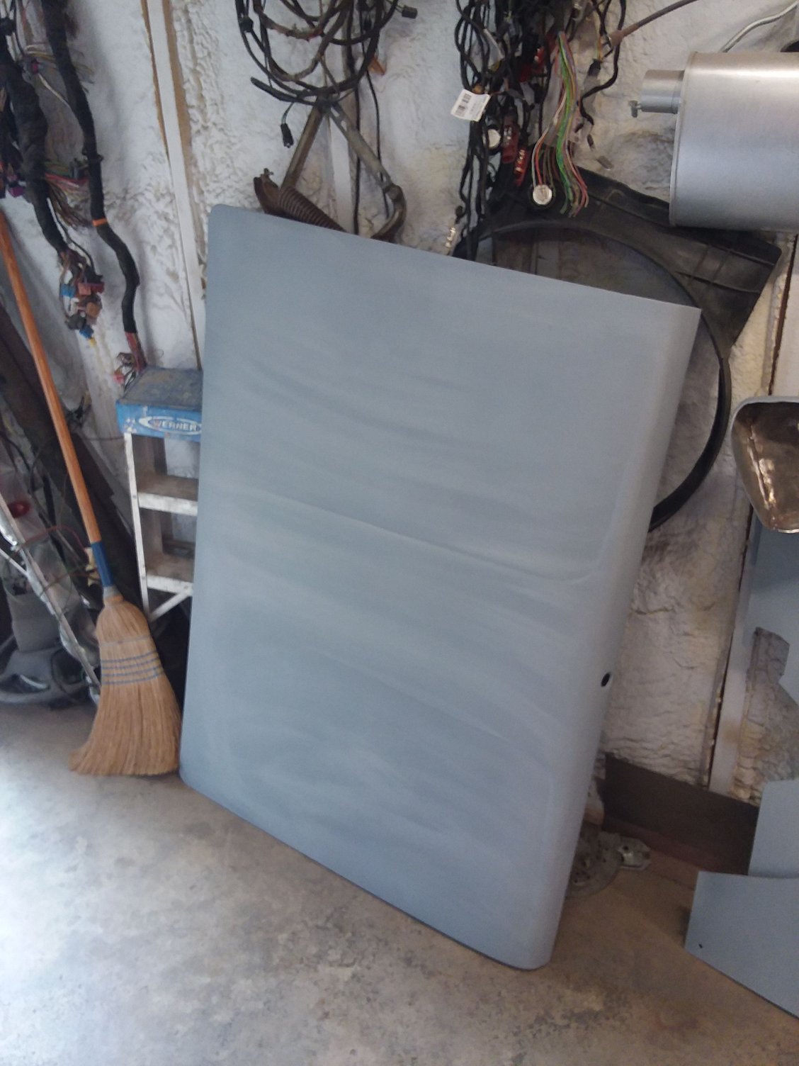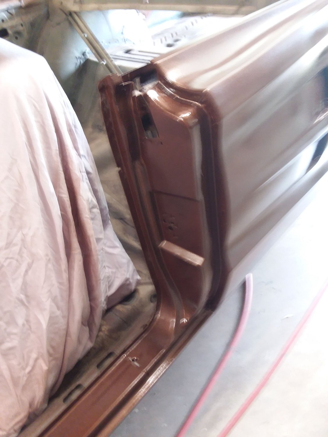 Shot the trunk lid and hinges today and the inner fender panels. Hung the left door and fender. Spent a lot of time getting those 54 year old panels to line up right and have good gaps.