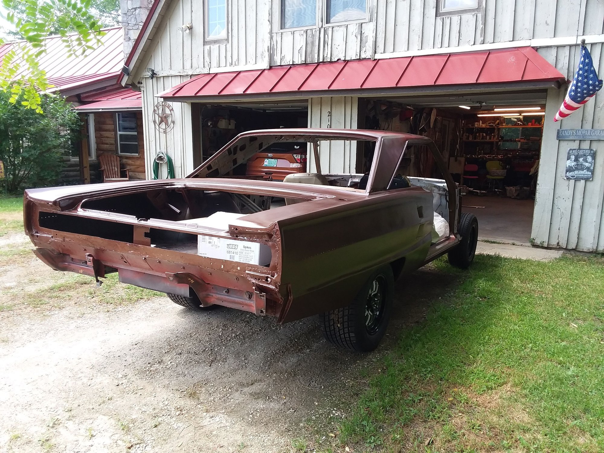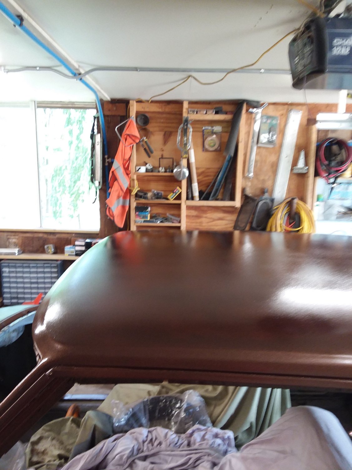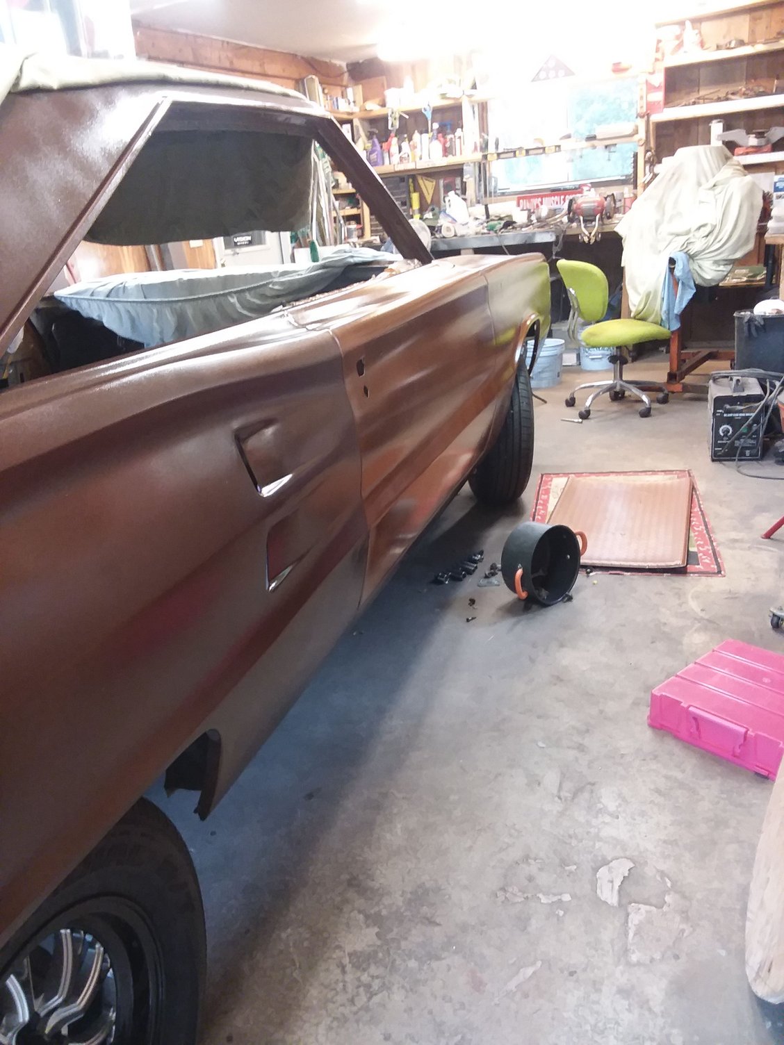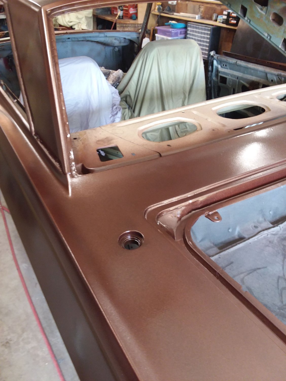 Got a few runs and a splatter plus some blotchiness but it isn't done yet. I need it to lay down and get it outside in the sunlight to assess the problems. Went better than I expected it to though. I'm sure the roof needs another even coat and I can't tell on the rest in the dark garage. I think it will be stunning in the full sunlight...
