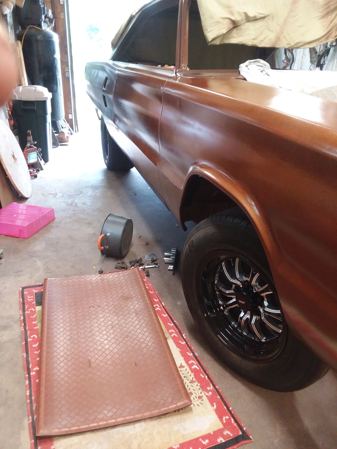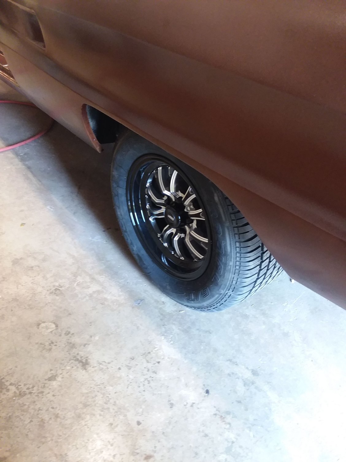 Got the tires and wheels sorted today and rolled her out into the sun to get a better look at the paint so far. What a blotchy mess. I have a long ways to go with this. sigh.