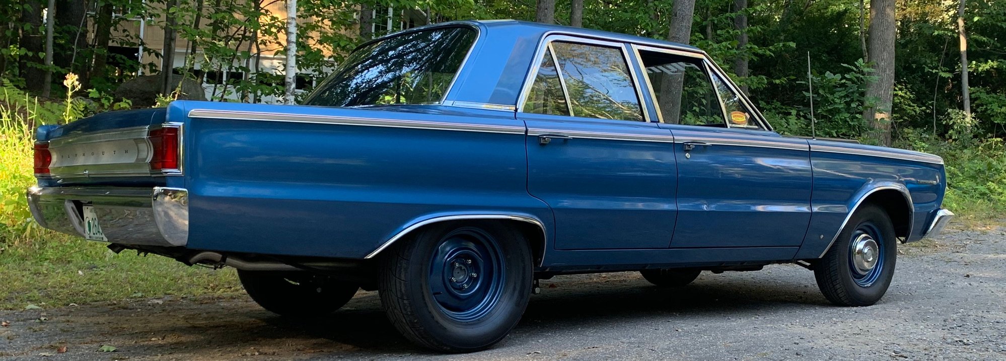 This is my 1967 Plymouth Belvedere II. Rust free Missouri car. Car has all original paint that I buffed out. I built. 318 roller motor. Has long tubes, Accurate Exhaust .480/.488 regrind cam, MSD ignition etc. I am building a 340 for it now. Has a TF 904. I just put a 742 case 3.23 Sure Grip on the 8 3/4 with Dr. Diff axles. It has Cal Tracs and 275 60 15 Drag radials on the back.