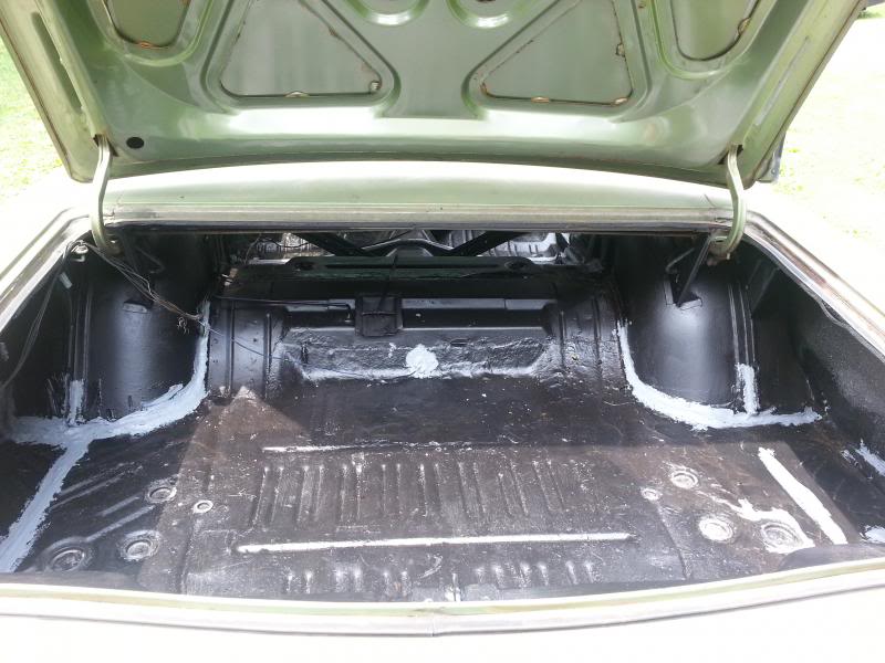 Well here are some updated pics finally. The weather has been horrible, rain has hindered progress being I have no garage and have to keep it covered when it rains. But The trunk and inside including behind the dash is sealed up and rust shielded. Just put the seam sealer down yesterday now on to the front fenders for minimal body work then the roof and I can finally paint it. I am going with Eastwood black primer being they offer a kit that comes with 2 gallons plus the hardener. Might leave it black primer or buy the rat rod flat black paint from eastwood. Any suggestions on how I should go about painting it whether to clear it or not being the paint is urethane and does not require clear coat would be appreciated.