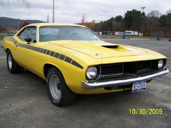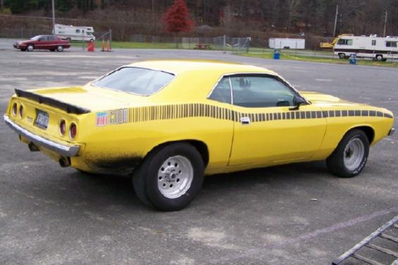 I have a 1973 barracuda painted as a bad clone of a AAR (wrong year!) it has a 440 bored and stroked to 499. 727 tranny with a 3.91 rear best time so far has been a 12.12 @ 110 mph just can't get it to hook up! |