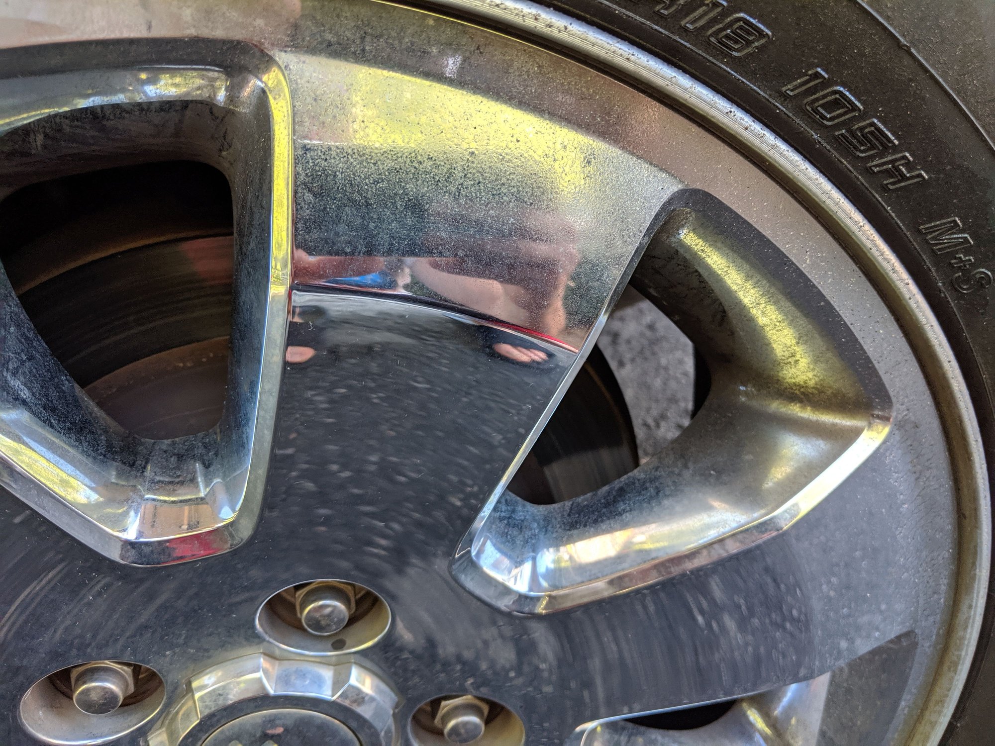 Before cleaning. There is a combination of tiny rust dots, road grime, brake dust, and some over spray from tire shine. Not the worst way to start, but definitely not show worthy!