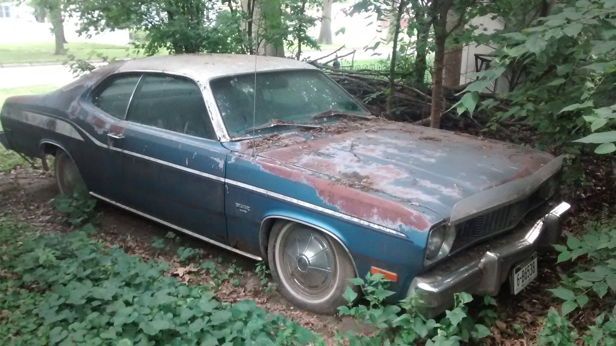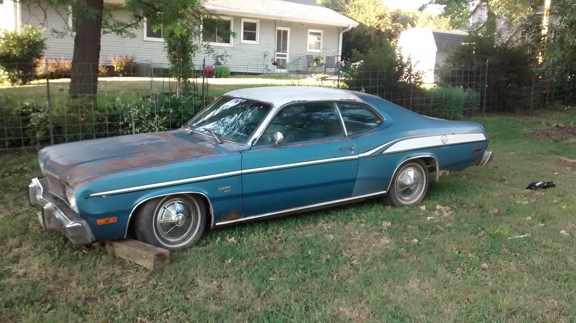 that low hanging front end is from the extremely cheesed up LH front frame rail. I have an eye on a couple of spots where I might be able to get replacement parts. A friend has a 1974 Dodge Dart that may or may not be for sale and there is a possible Duster near me and a Salvage yard about an hour and a half away can get me the frame rail and inner fender for about $200. I'll post some more pictures later.