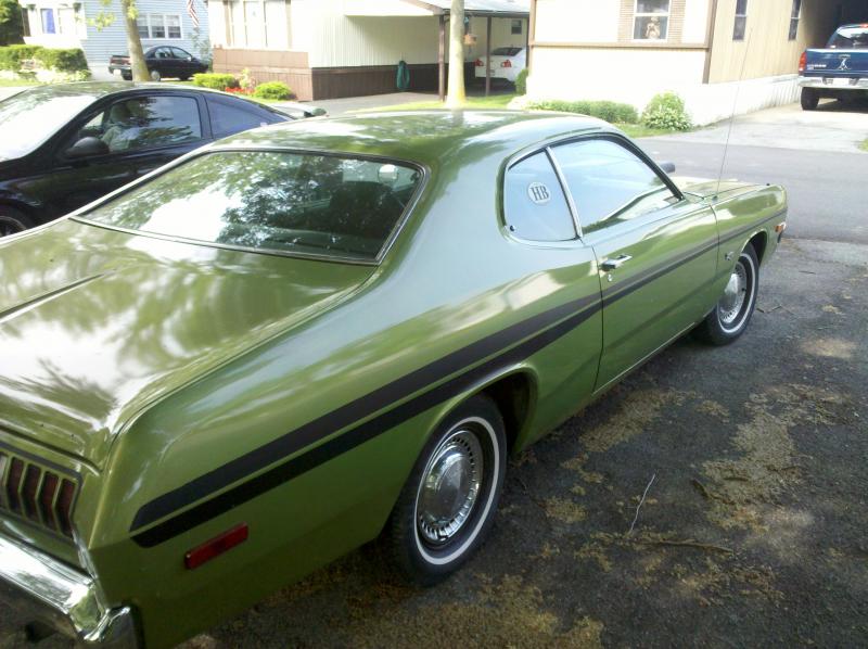 I'm picking her up Monday, just bought her off a guy in Buffalo, NY and pick it up tomorrow afternoon. It was a Florida car he bought off his brother in 2001 for $1500. Since then the slant six was rebuilt, he added headers and a dual exhaust. The car exhibits almost no rust aside from a little bit of bubbling on the driver's side rear quarter. The paint was re-done in the early 2000's and is the original color, and is clean enough to keep for a while. I intend on re-doing the upholstery, fixing the cracked dash and cleaning up the finish on the interior and ultimately I want to swap out the slant six for a 340 and a 8 3/4 rear.