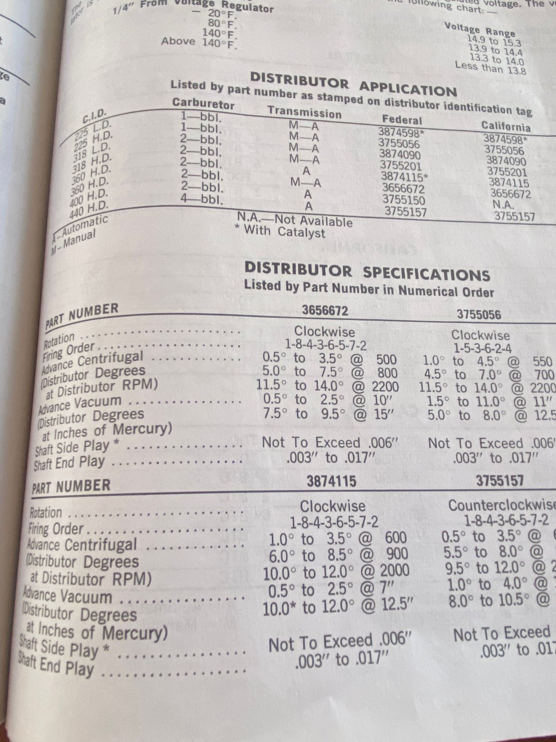 Hi, I'm working on a 1977 B-series van with a 360ci and a holley 2210 or 2245 carb (need to verify next time). It starts and idles fine even when cold, and will rev up fine in park, but as soon as you put it in gear it starts to run a bit rough and then once you put it under load it bogs down to the point where it will stall out. I've put a vacuum gauge on it and it will get down to 5 in/hg just trying to accelerate at half throttle. If you really get on it it will backfire.