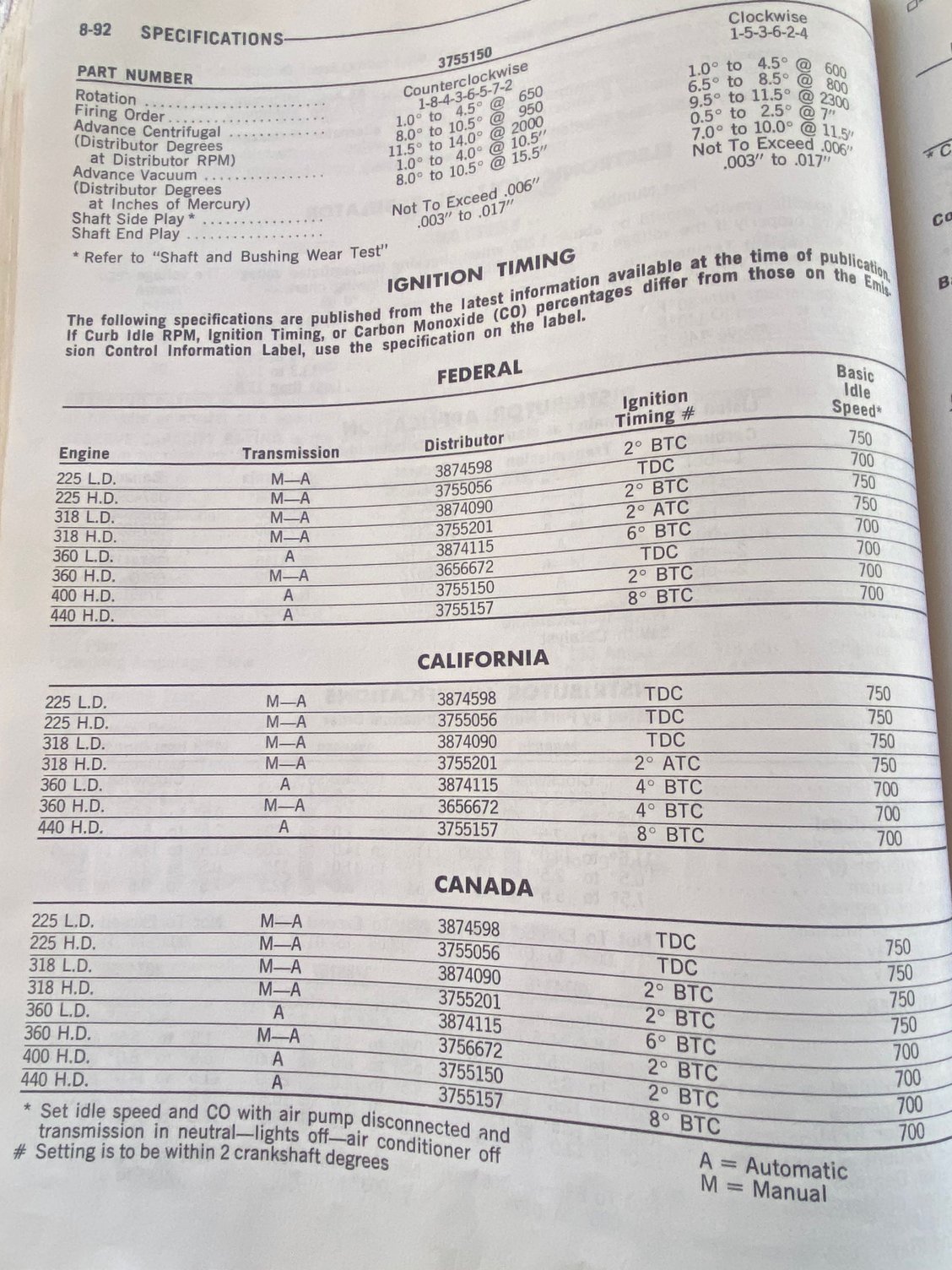 I would suggest... 10* BTDC with the Vacuum advance disconnected at Idle. (Anything under 1000 RPM for idle) and see if that helps....