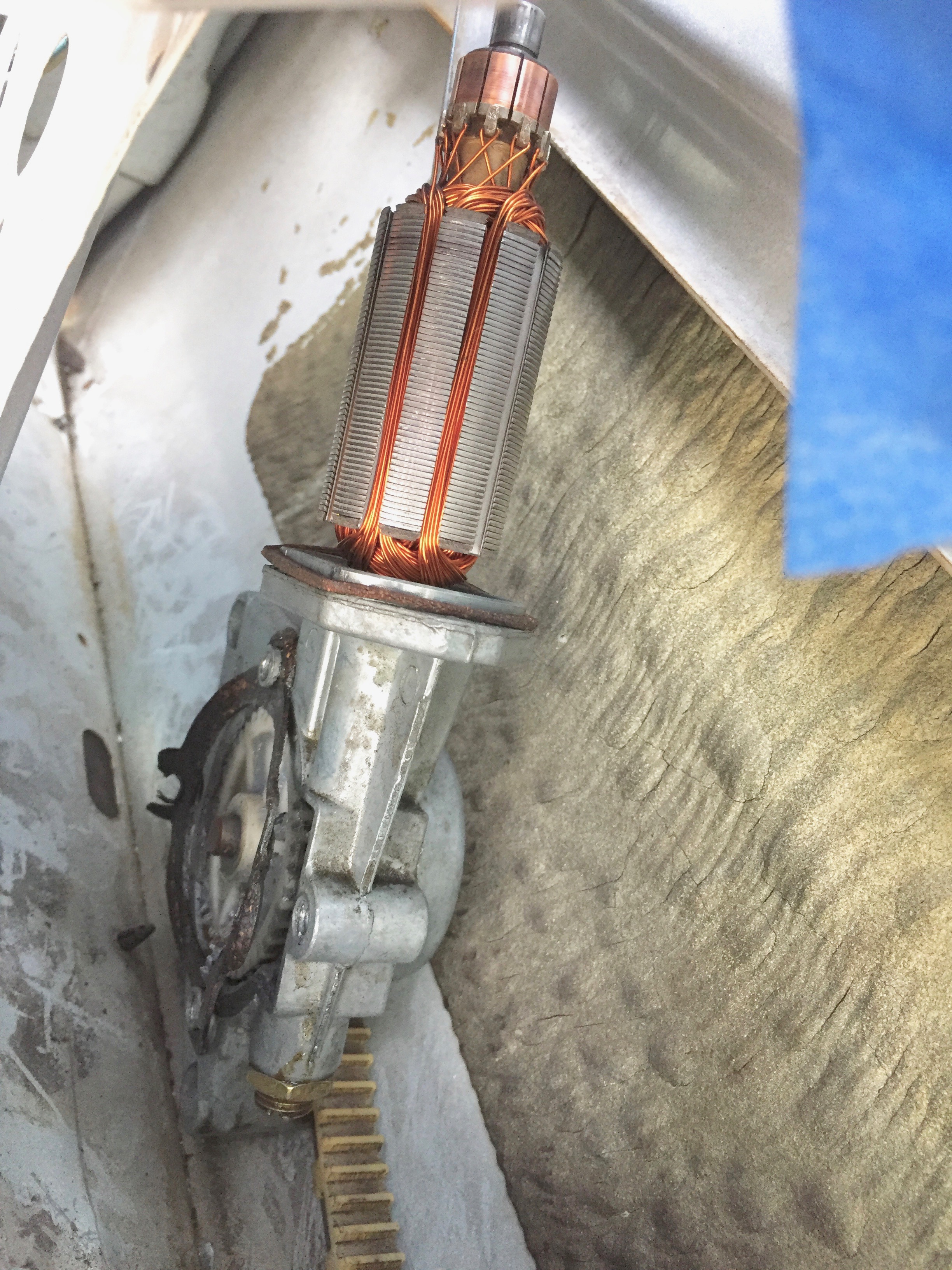 decided to dissect the motor while it is still in the door and still attached to the regulator.