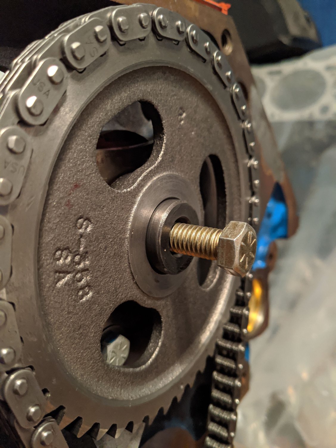 I have a 72 Cuda project that I am working on at the moment. I have a 440-500 stroker that will eventually go into it, but I want to daily drive the car for a little bit and have some fun with it. I live on campus, and my job is very close, so it won't be much of a problem, but being in college and broke, I bought a cheap 318 that came with a crosswind intake so that I could convert it to a carb setup without to much trouble. The only problem and question I have at the moment, the camshaft I am using for this rebuild, is basically a stock 340 H.P cam and has the longer L.A snout that you would install an eccentric washer on. I won't be running an eccentric because the magnum timing cover doesn't have an inlet for a pump, so I am going to use an electric pump inline with a regulator. There still is some wiggle room after installing the cam gear and I don't have the eccentric washer..... considering they are a little pricey to drop money on something that won't run a pump I was wondering what you guys would do at this point so that I can tighten the cam gear down without rigging it and jeopardizing the cam bolt torque...any kind of shim, washers...etc that I can use to install this timing gear correctly on the cam? Thanks, guys!
