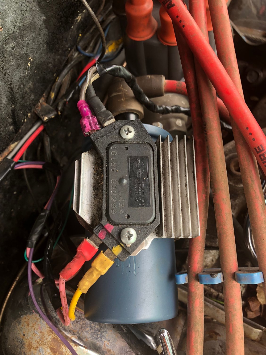Hi guys, new to the forums. I just bought a 1970 Dart with a 318. I bought it knowing it didn’t run. I am getting fuel and air but no spark. The previous owner redid wiring with an EZ wiring kit and updated a few things. I have power to negative and positive posts on the ignition coil when cranking. I pulled the wire to the distributor to see if it was sparking and it wasn’t. Replaced the ignition coil and no difference. He had updated a few things and I noticed that there is some sort of voltage regulator on top of the ignition coil which has wires coming from the coil negative and positive and they run to the distributor but I don’t see any diagrams showing that section. Previous owner says it was running then he parked it and it wouldn’t start again but he may have been lying. Does anyone have any ideas as to what the issue may be? I was going to go do the distributor, cap, and rotor but if the ignition coil isn’t sparking I would imagine the issue is before the distributor. Tia