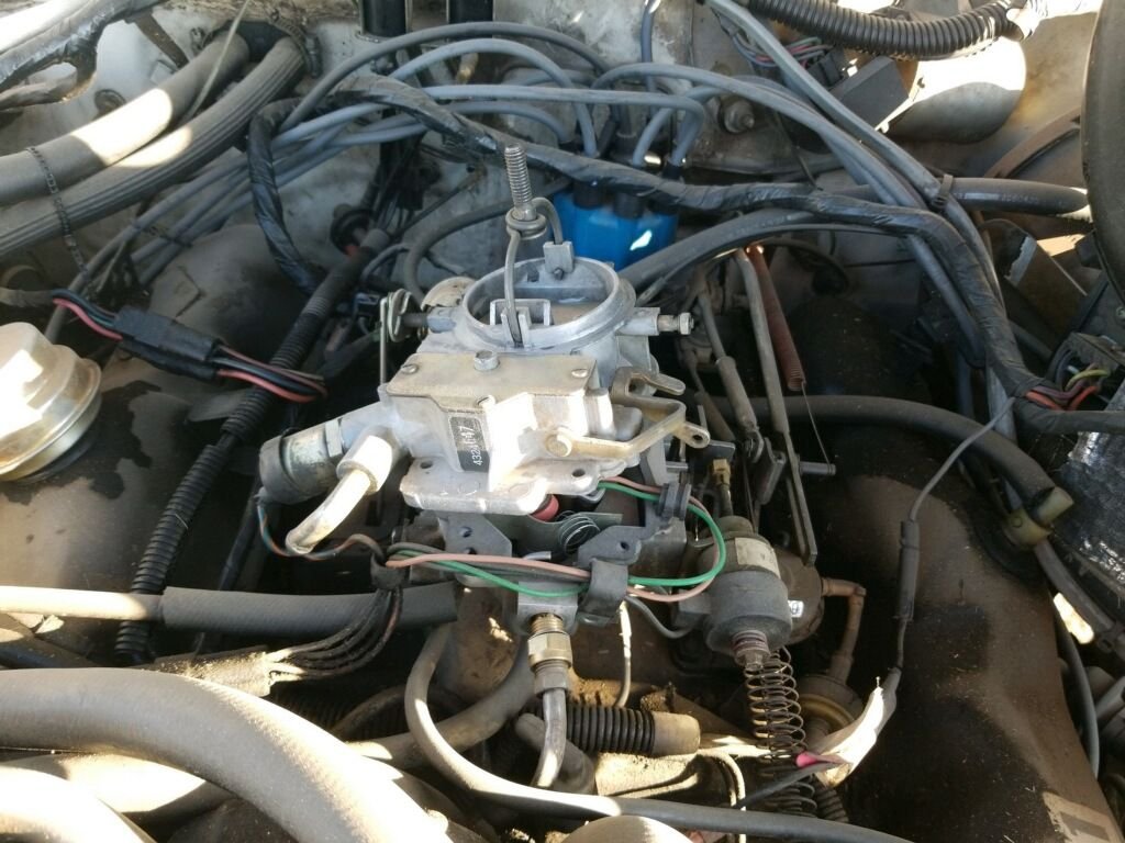 Check your oil level to make sure you did not dump gas past the rings into the oil pan. There are two carbs, yours is the 2 barrel with the electronic feedback system. About 400.00 rebuilt.