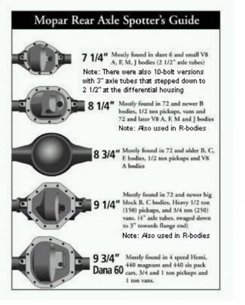 Looking at a 73 Challenger for sale and wondering is there a place on the car that identifies the type of rear end?