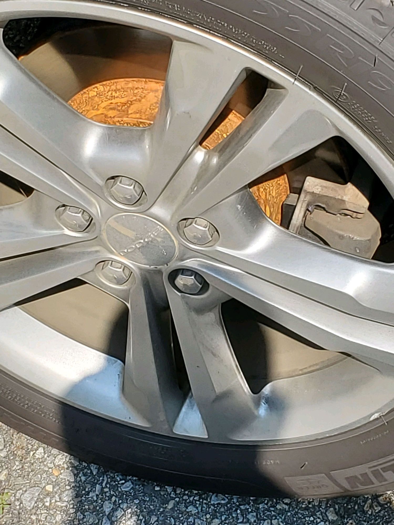 The surface where the pad runs looks normal. The rotor gets pretty warm in use and when it gets wet, rust starts showing up. Clean them up and paint them with high temp paint.