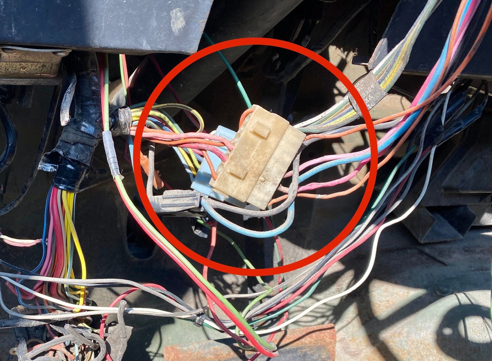 The ignition switch was terminated to a single connector on the early trucks (74-75?).