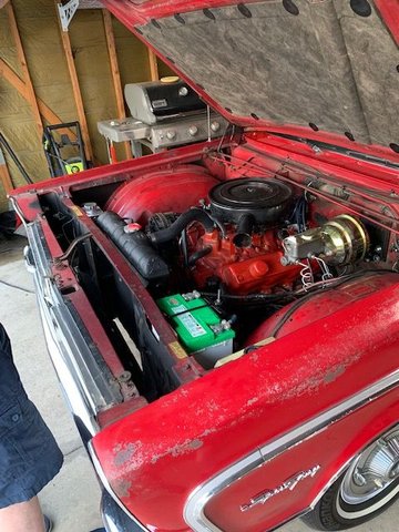 1. Front power disc brakes with dual master cylinder 2. Complete rear drum brake rebuild with new brake lines 3. Monre shocks (4) (rear load lever) 4. New idler arm 5. New distributor cap, points, condenser 6. Dual exhaust 7. Custom retro sound am/fm (fits dash and looks oem) 8. New alternator 9. New hood insulation and hood weather stripping 10. Radiator overflow container 11. New truck mat, spare and jack 12. Buffed and recently professionally detailed 13. New front bucket seat covers (oem) on order with an estimated October 21st deliver that cost me $600 and will be included with sale. Currently is an 8-month lead time from the supplier. Everything works on the car, all gauges, dash lights, horn, clock, windshield washer fluid hood turn signal indicators, truck light, power top, power steering convertible top is in great condition. Rear plastic window is in great condition as well. All glass is intact. Car runs strong on 2bbl Ball & Ball Carter Carburetor. No overheating. Car has 21,200 miles to date. Car is a true survivor, has minor paint chips and paint peeling on front hood but otherwise in great original condition with the original paint.