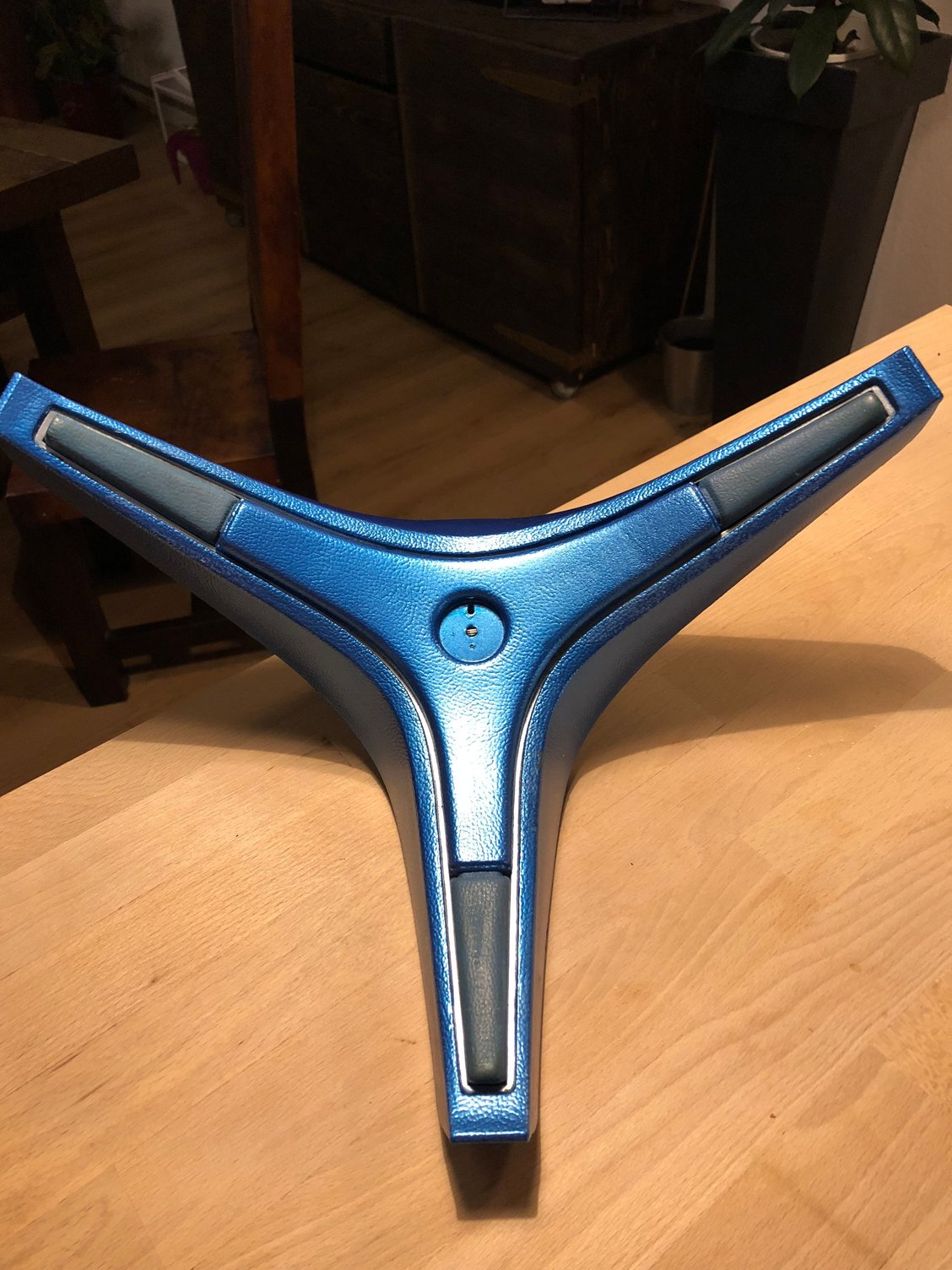 after i managed to remove the horn ring and the center cap i started to restore them. as seen on one of fhe previous pics, the pre owner broke the center cap when he tried to remove it. i sanded and sprayed some crackle effect on it to get the ‚original‘ structure.