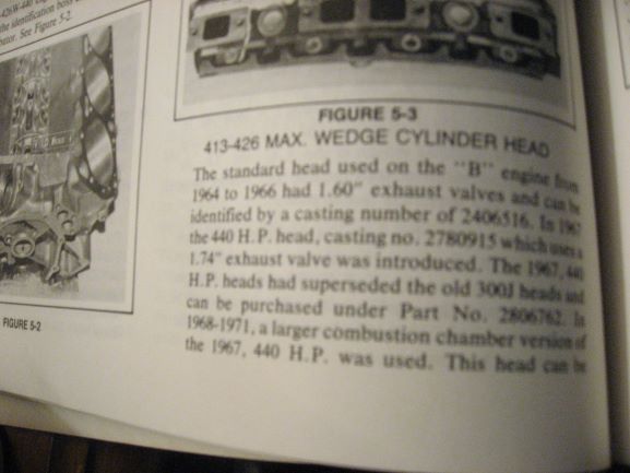 Thank you so much, you are correct, I was thinking of my 442 heads for some reason. The intakes are 2.08 D.C. p3690708 and the exhaust are 1.74 D.C P3690709. I found them in my D.C. book to verify size and it is stamped on the boxes they are in. Yes, they are the small chamber 67 HP head. Apparently the only one better is a stage 5?