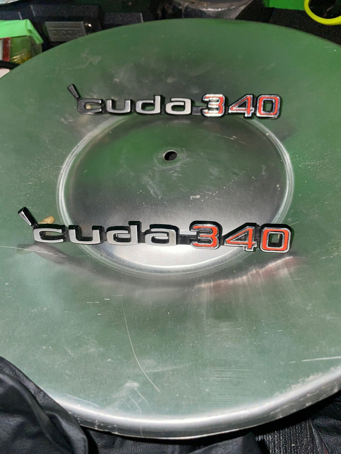 I have 2 original hood emblems for the Cuda 340 and the original pie plate top to the air cleaner. Pie plate has a little bend on the edge, you can see in pics. They came out of my uncles house that I’m in the process of cleaning out. Again these are original, not reman. Would like to sell all together. Looking to get $200 for all plus shipping. The emblems alone on eBay are going for $200, But I’m open to offers too. Located in Michigan. If being shipped, shipping will also be a flat rate of $20.
