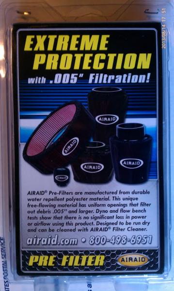 The AIRAID Pre-Filters are manufactured from a durable water resistant polyester material.