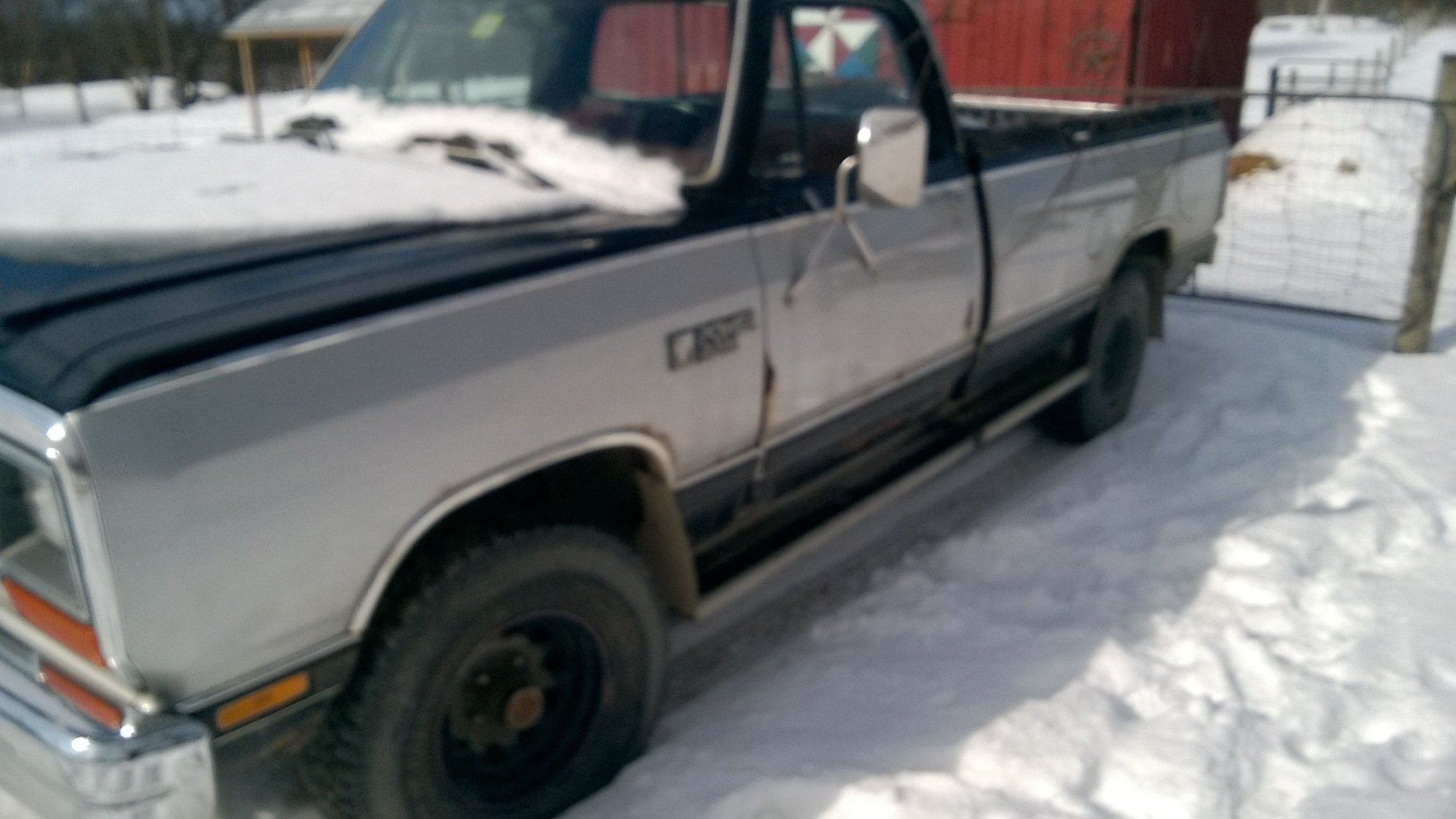 I Bought this truck for the passenger car 440 RB that's in it. I also took everything in the engine compartment. The truck cab is stripped to the metal except for the heater box, all of the remaining running gear and chassis are there and operate well, the 4x4 works great. It has a 9.25 limited slip rear. Dual exhaust, chrome diff covers. Really nice chrome front bumper with guards, the body sheet metal has zero dents, I have all of the polished aluminum trim except the rear upper bed corners, all of the lower black 4" trim, all ,4 wheel opening trims, all the badges and emblems. The hood is pristine, black. the cab is nice , the glass all good except the windshield is cracked, rear slider, some parts are already gone, like the tail light lenses, outside mirrors, bed corner trim, interior plastic parts excluding the dash, truck oil pan and pick up, grill shell and headlight doors. This is a longbed. The doors need the outside bottom 9" replaced, the left rear lower quarter tail and corner, right rear tail needs a small spot replaced, and several surface rust spots here and there which can be sanded out and filled. It's Black on top and bottom and silver in the middle. I have every trim clip and screw/bolt that has been removed. it was a good runner and driver to begin with.