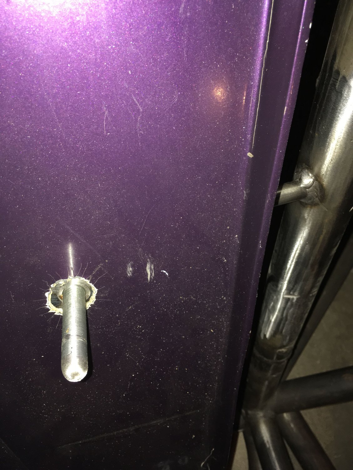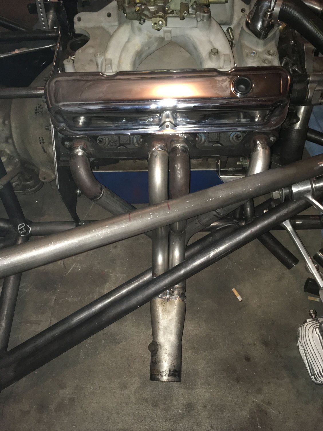 Got the body mocked up and ready to add permanent mounting and proper door hinges and latches. I will be cutting out the long X brace in the back as it’s not needed with moving the shock mounts forward. Had to do some wango tango at the A pillar as the Viper is different than the Corvette. Cut out part of the drivers X to swing it out for easier in and out. Looks like I can get a 42” wheelwell in the back. Shawn says he wants to paint it gold with black stripes or candy red.