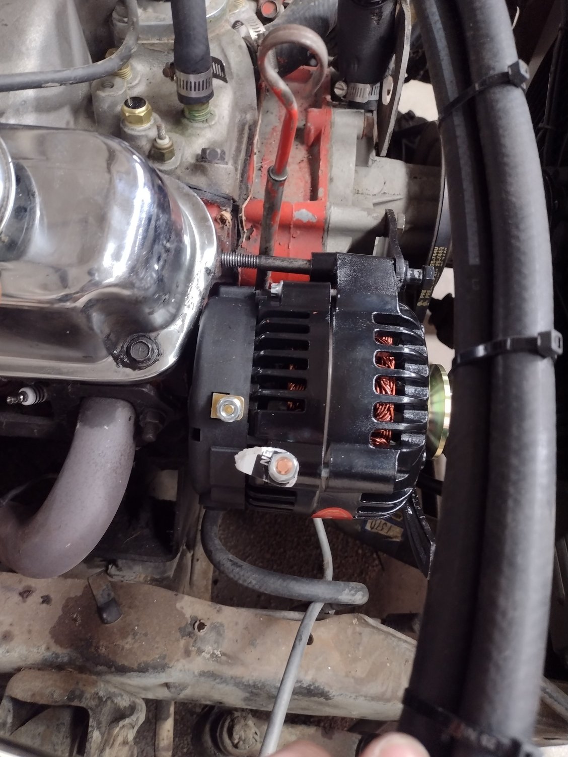 First picture is the original mount and first alternator I ordered vs the stock one. Other pictures are off the .60 inches shorter alternator that powermaster recommended and it still hit the block and didn't come close to mounting up. So I'm just confused if I'm missing something or what here.