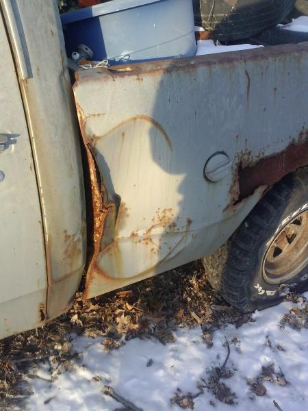 ok, so i finally got a chance to go out and take some more pics of the truck where she sits today. Its going to be going in the garage that its sitting next to right now as soon as i get some stuff situated with my trailers(i own a trailer park so i have maintenance materials everywhere) My plan with this truck is to strip it to bare frame and sandblast and recoat the frame, run all new updated lines and wiring, rebuild or possibly upgrade the axles with lockers, rebuild the 400 and give it a little stumble in its rumble, the body is still way up in the air about what treatment its getting because there isnt a straight body panel on the truck so it may get a steel flatbed, but im thinking sour apple green with matte baldwin stripes. Snorkel kit, twin stacks, 36" boggers or 37" humvee tires, interior side will be buckets, but havent decided whether i want 5 point harness racing seats or not. Then once its all done a 1 1/2 chromoly tube exocage.