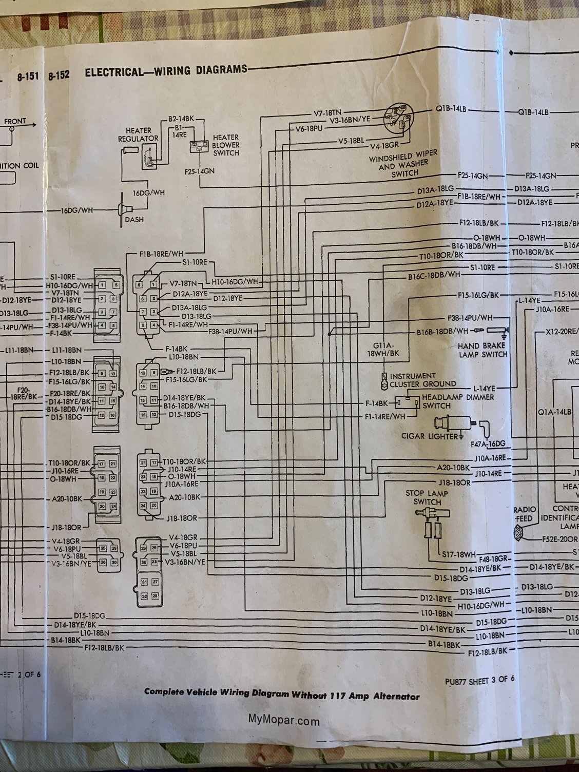 I do not have the wiring diagram in front of me, I have questions concerning flow, I thought it worth testing the wire that off the top of my head comes directly from the dash voltage gauge to presumably the ignition switch. I’d like to understand how to make the proper test before and after the ignition switch
