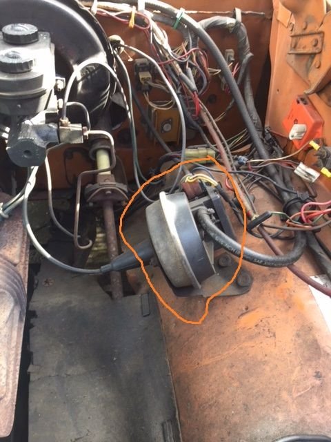 Also I'm wondering if anyone can identify the following firstly in the cab directly below the steering wheel and some how attached to the brake pedal or system