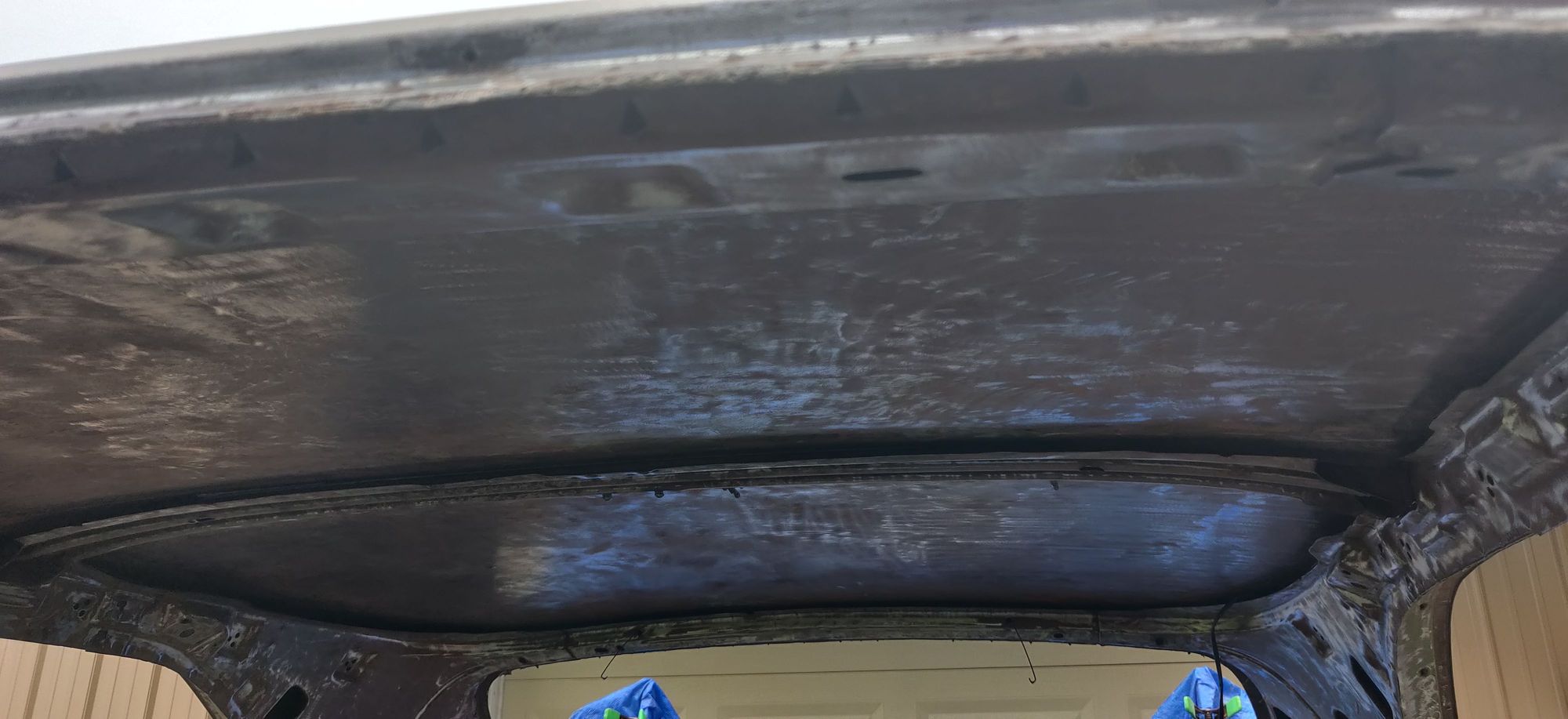 Interior roof sanded prior to rust prevention applied